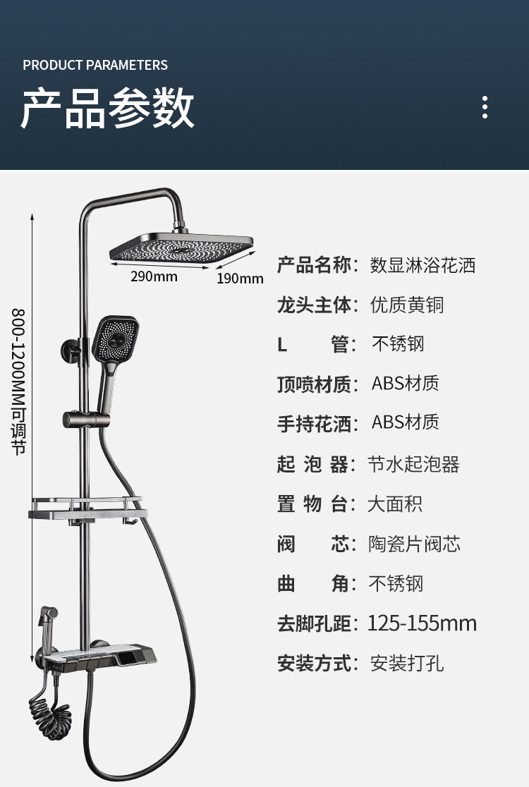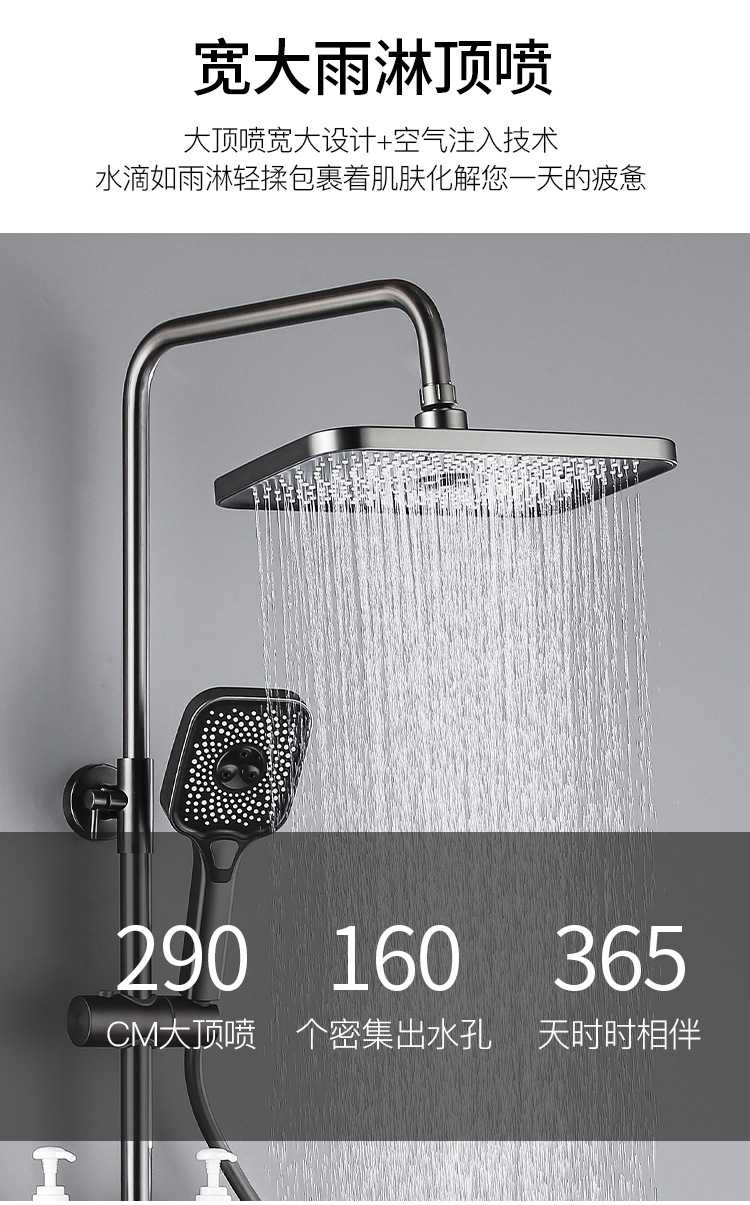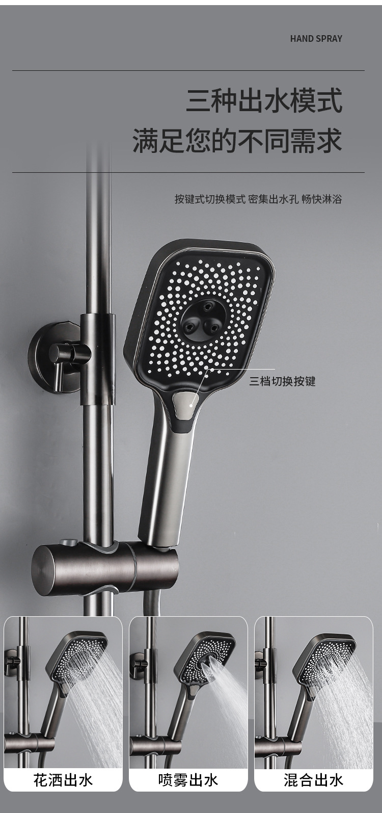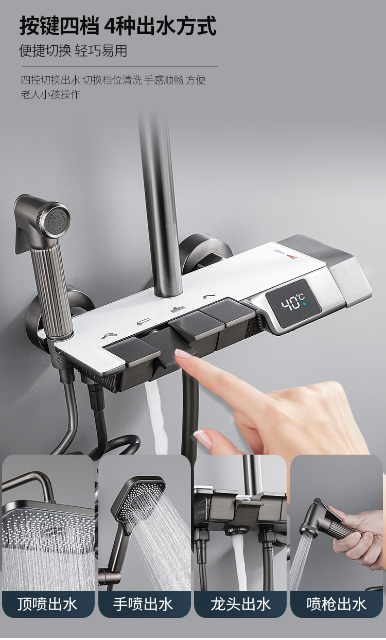 Grey shower set all copper piano intelligent shower set bathroom pressurized rain shower head CIR302CLE