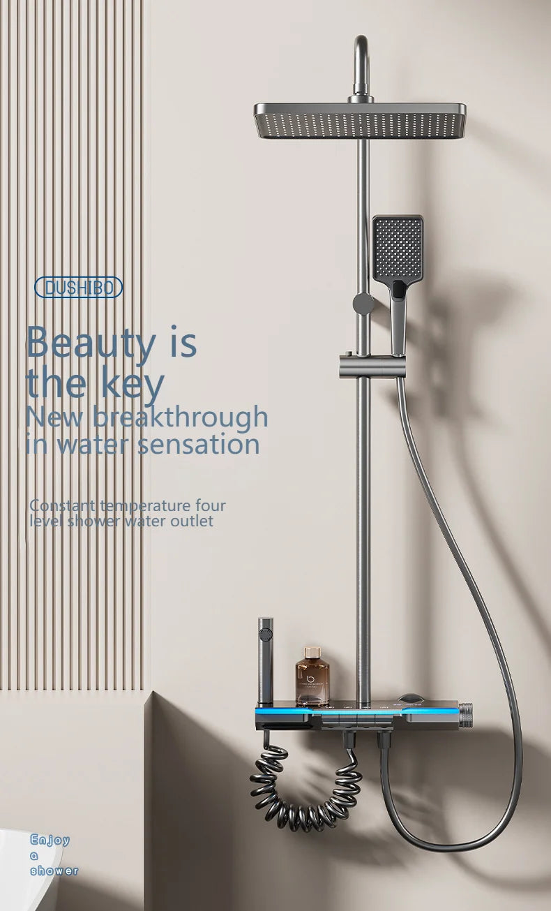 Grey Shower Set Ambient Light Shower System with Digital Display