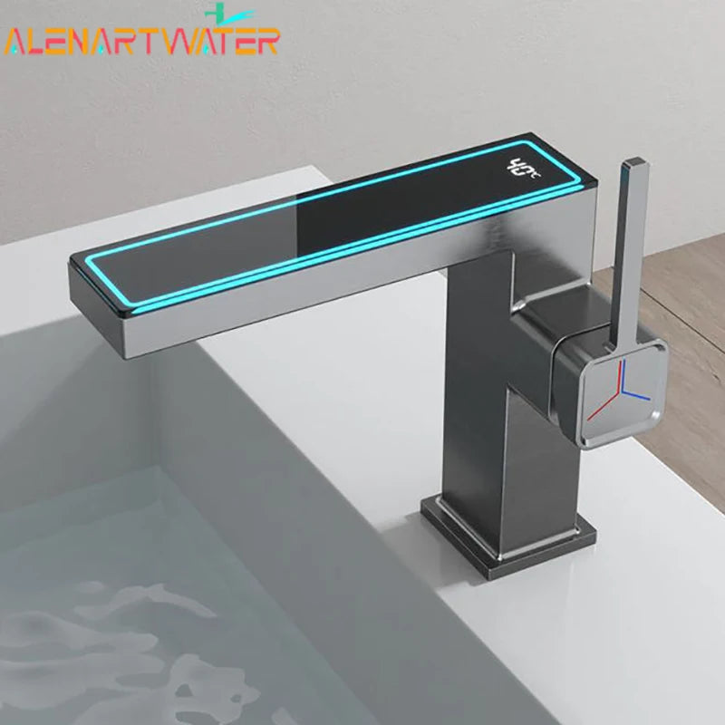 Gun Grey Bathroom Faucet Intelligent Digital Display LED Basin Hot Cold Water Mixer Sink Tap Brass Washbasin Vanity Tap Tapware