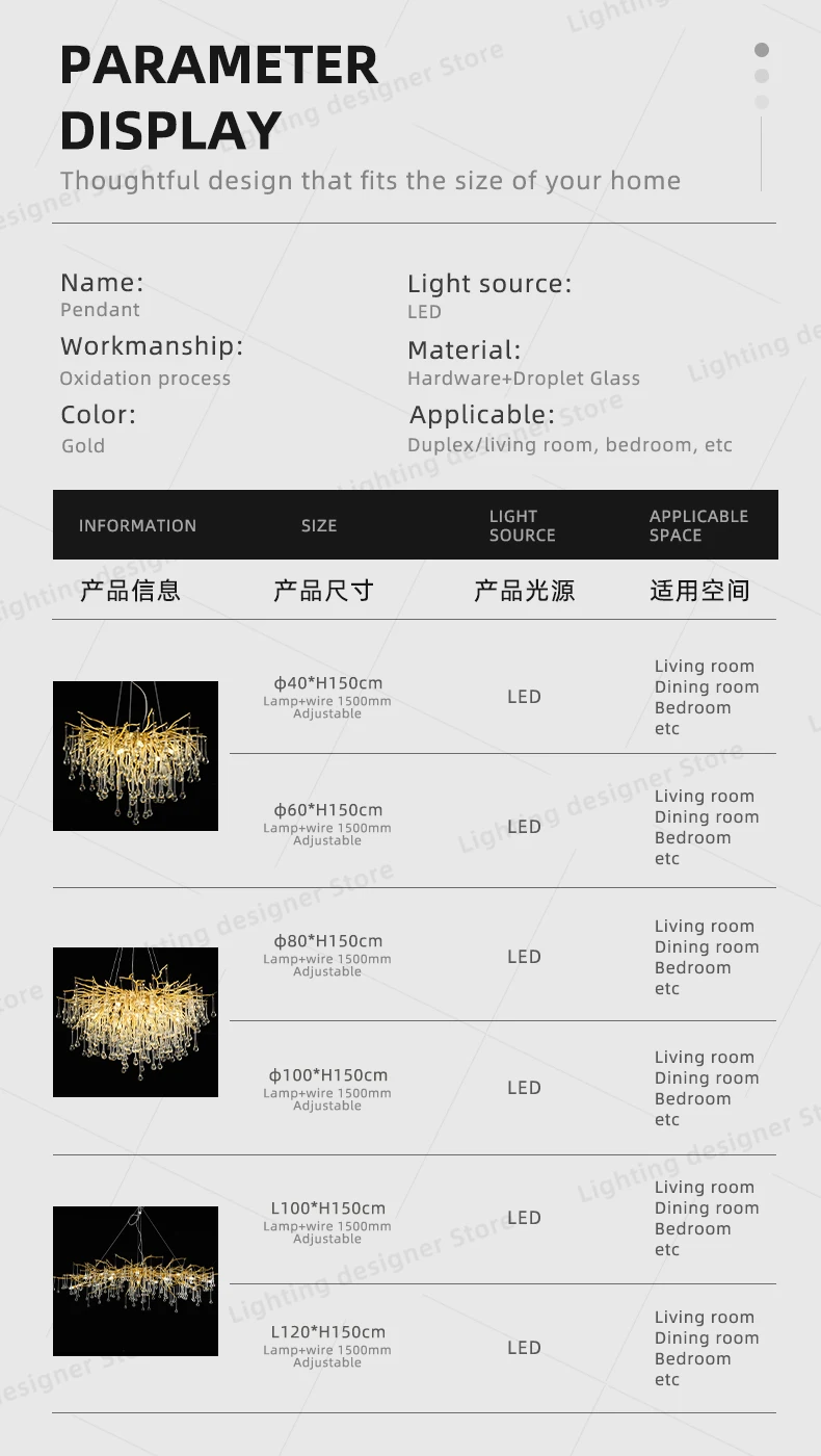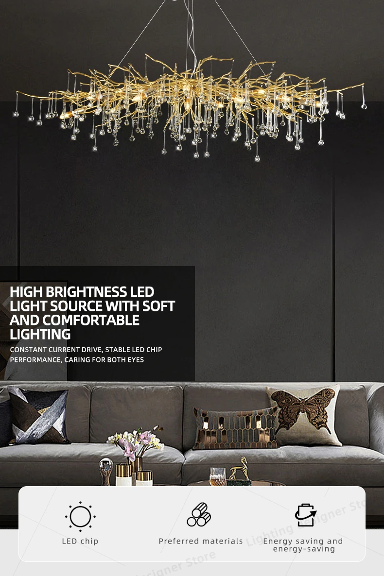 Hanging Chandelier for Living Room Dining Room LED Chandelier Hanging Ceiling Pendant Light Luxury Led K9 Crystal Pendant Light