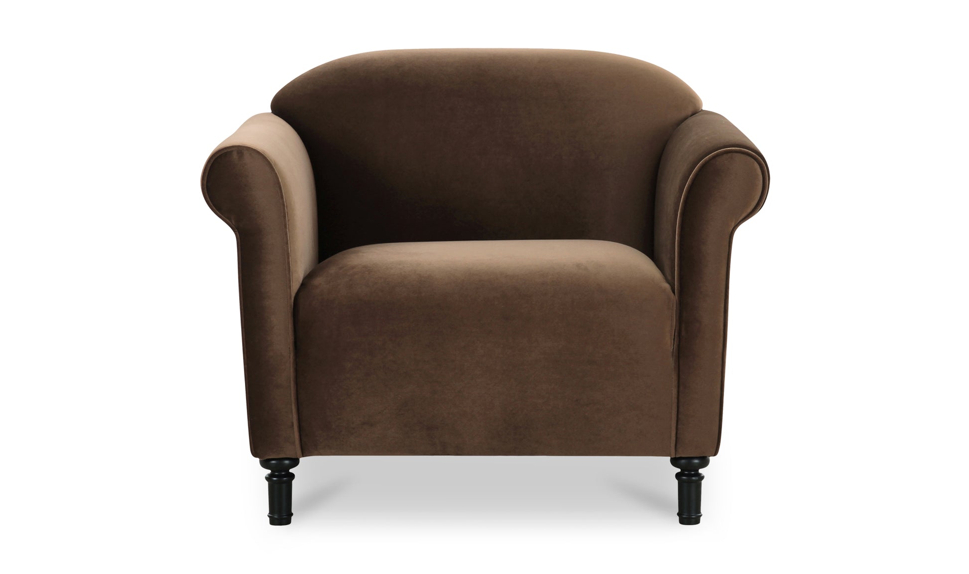 Upholstered in dense velvet-like faux mohair, the Harmony accent chair embodies traditional elegance showcasing soft rolled arms with a subtle, gentle curve and finished with exquisite piping detailing that extends from the arms to the back. Its legs are beautifully crafted from solid birch, featuring turned details that speak to its thoughtful craftsmanship.
