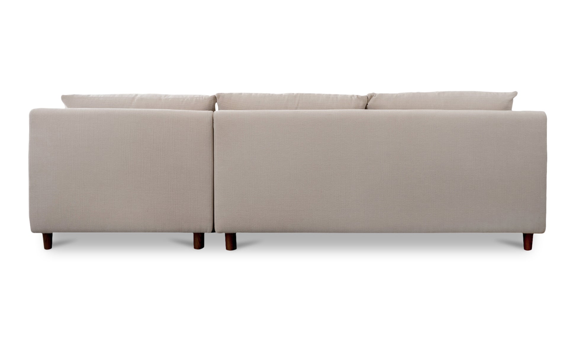 The Hutton sectional features soft-to-the-touch chenille fabric constructed from 100% polyester treated with C0 performance technology. A traditional higher back and tapered dark wood legs nod to mid-century aesthetics while providing contemporary coziness as a plush feather topper ensures unparalleled comfort.