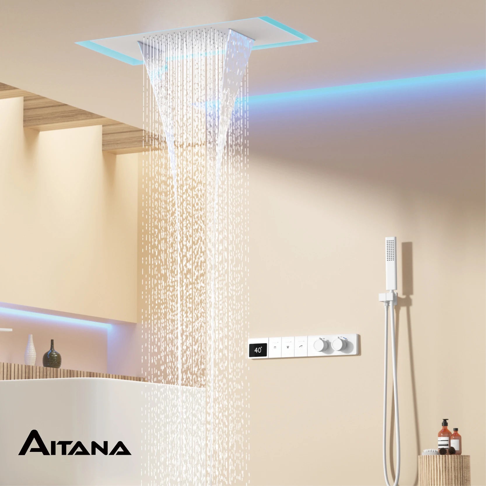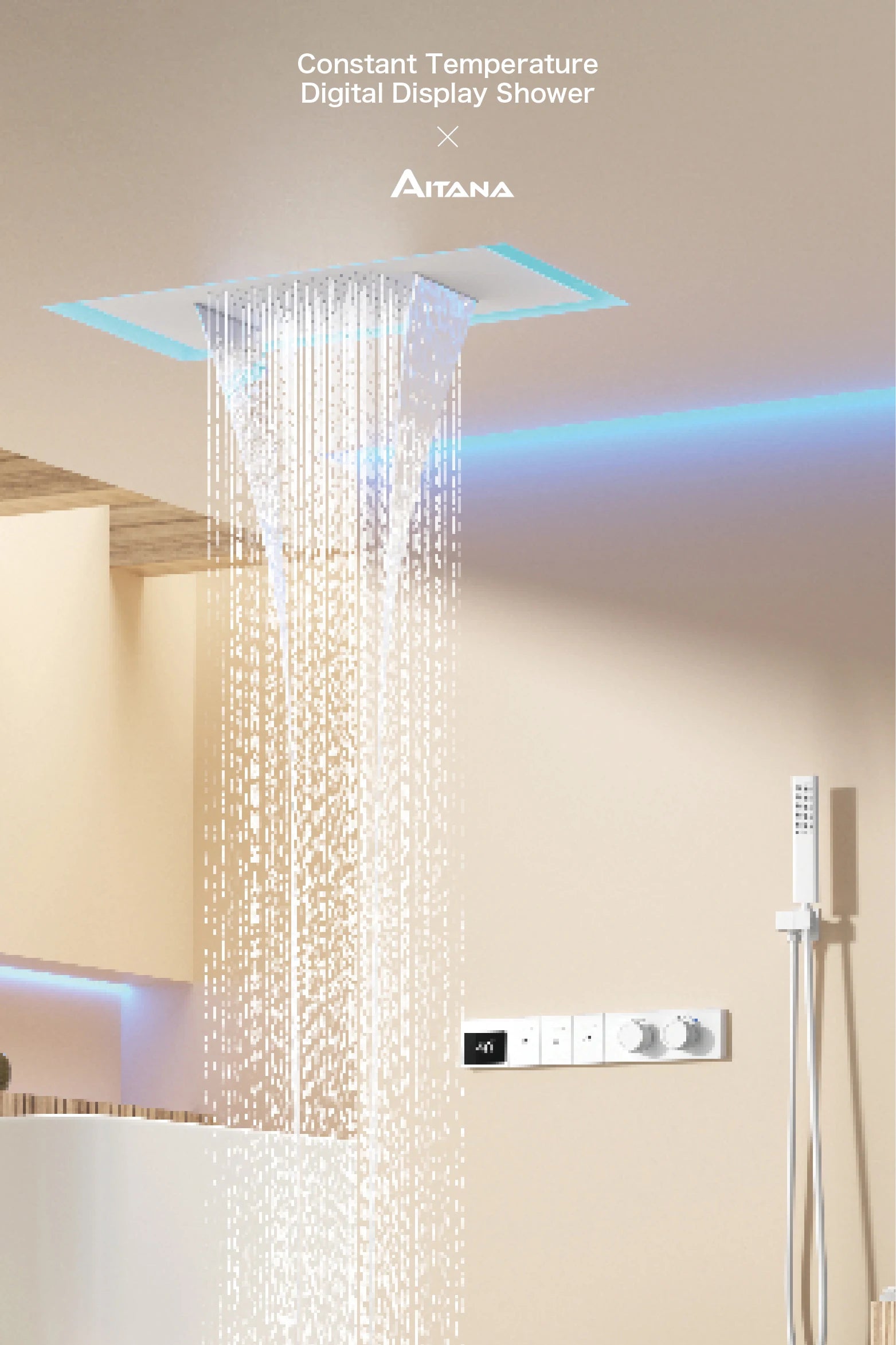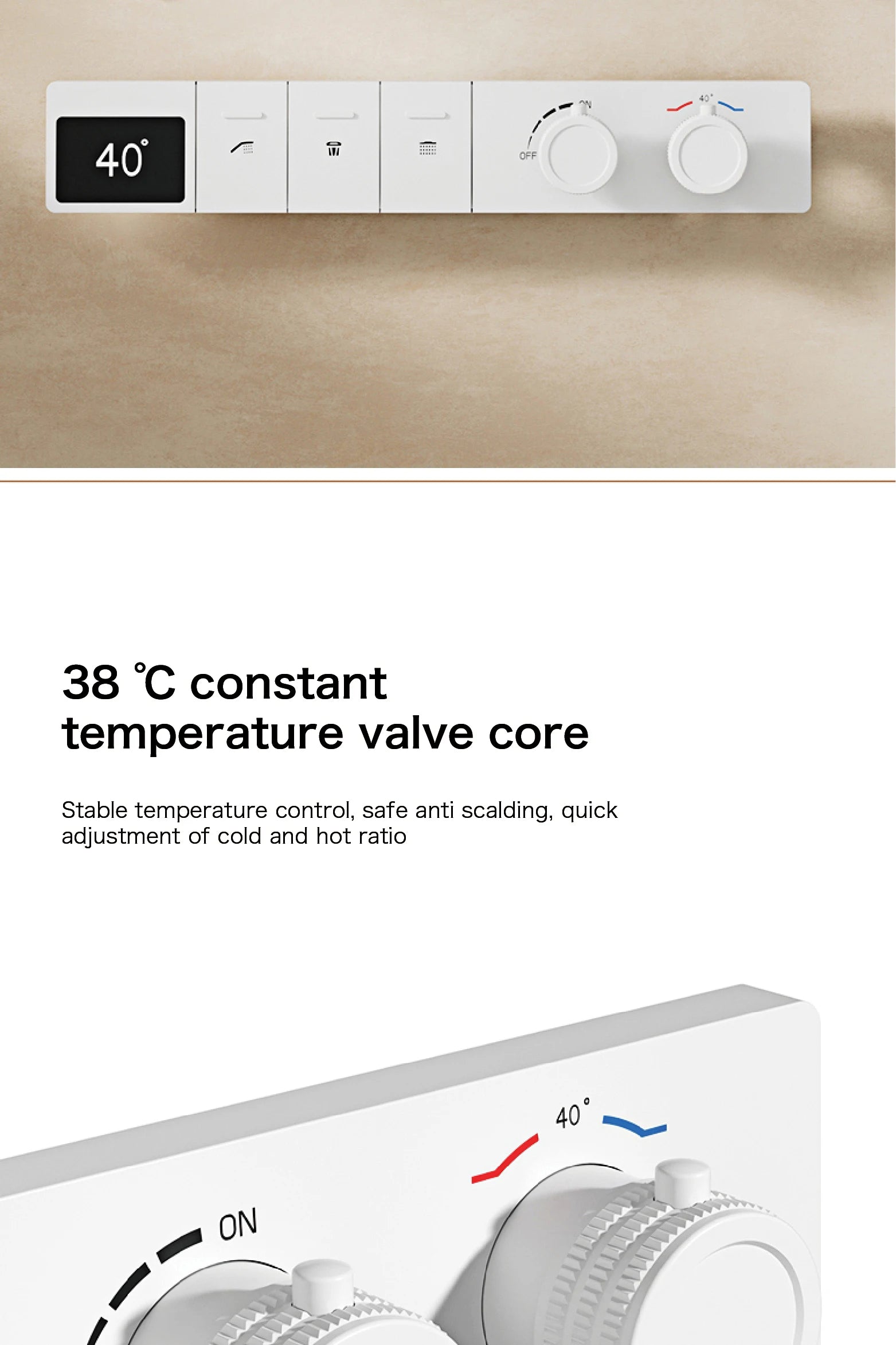 Intelligent digital display luxury white brass shower system with hidden design Dual control of hot & cold Wall mounted faucet