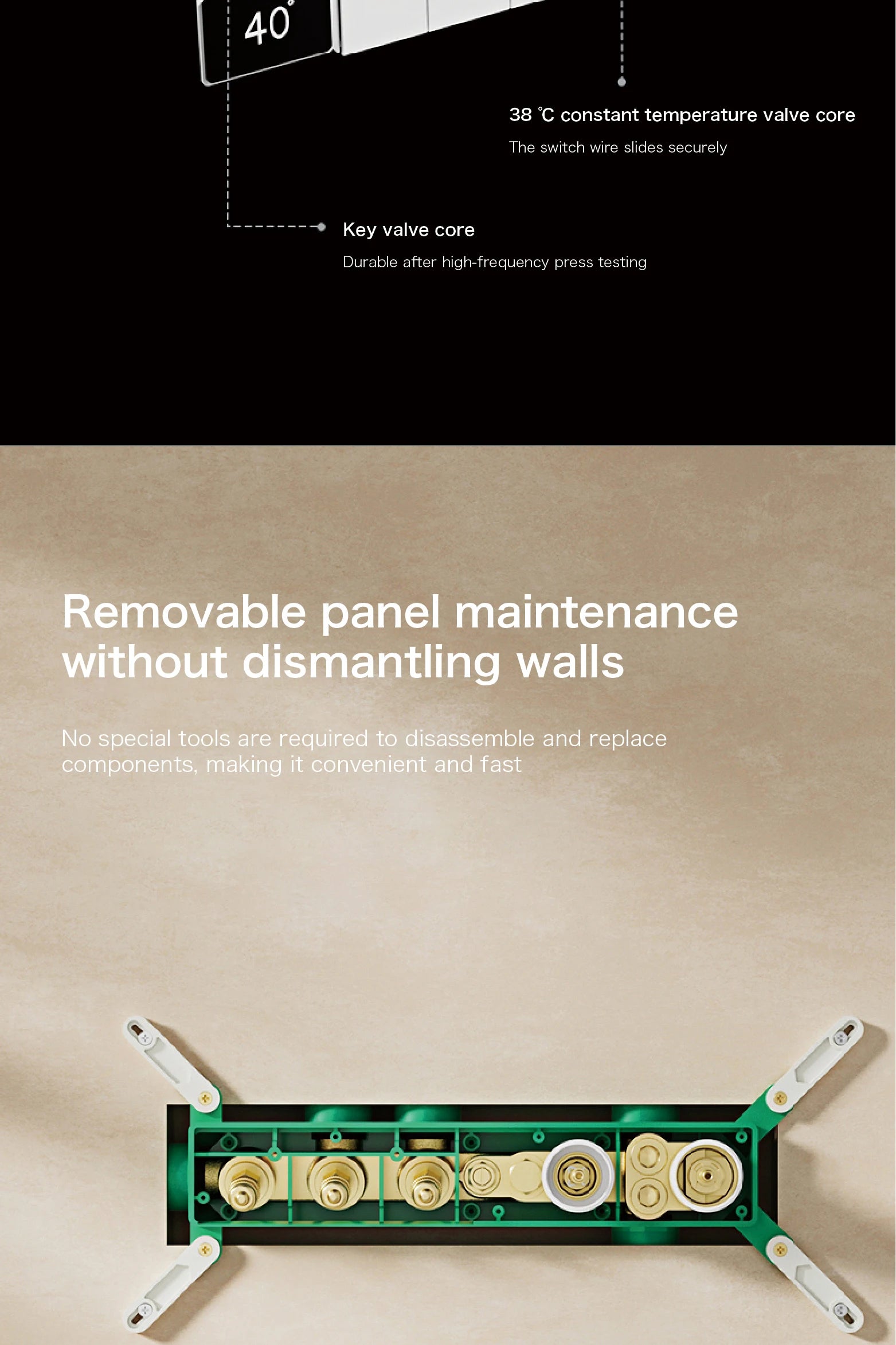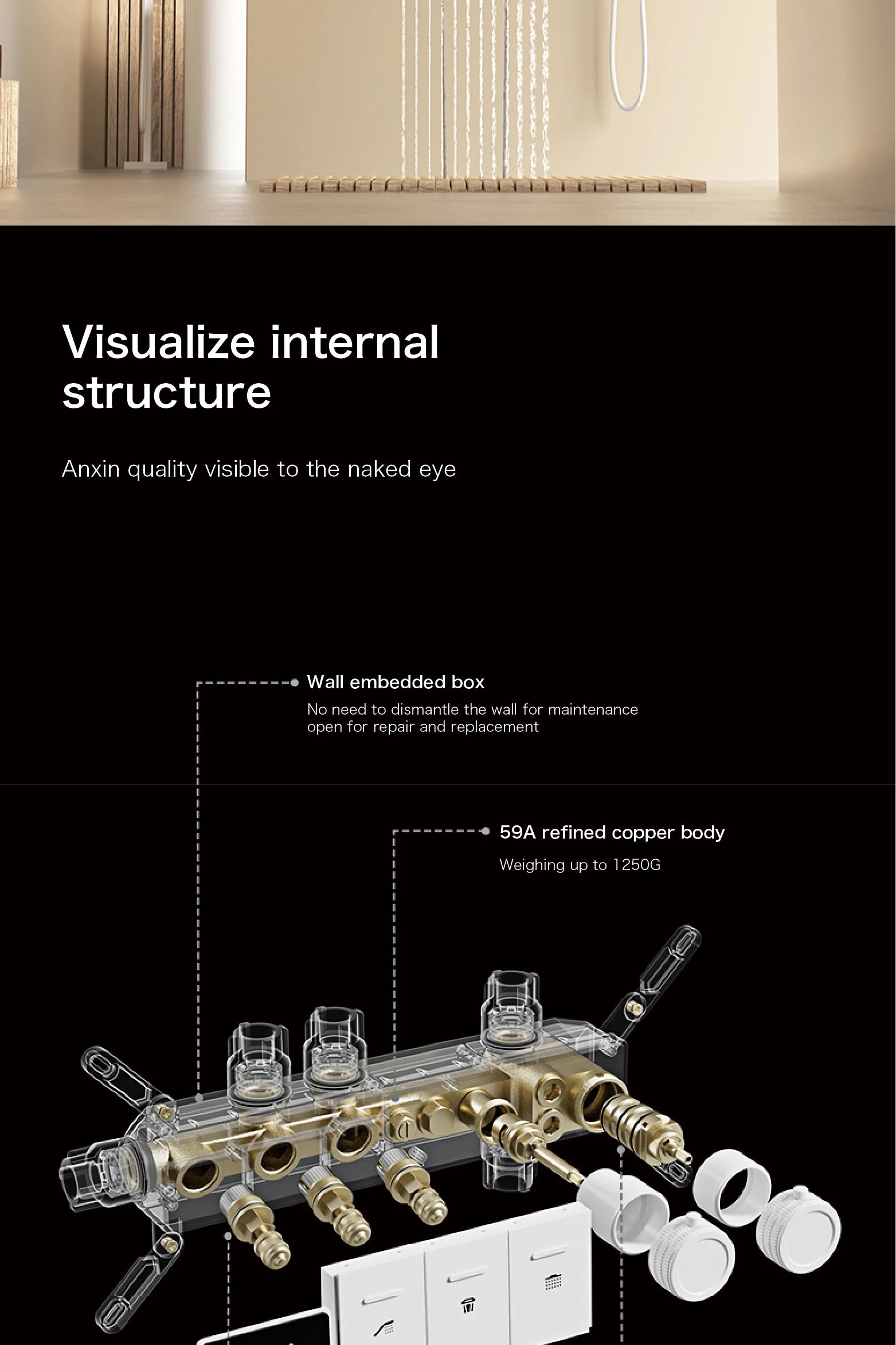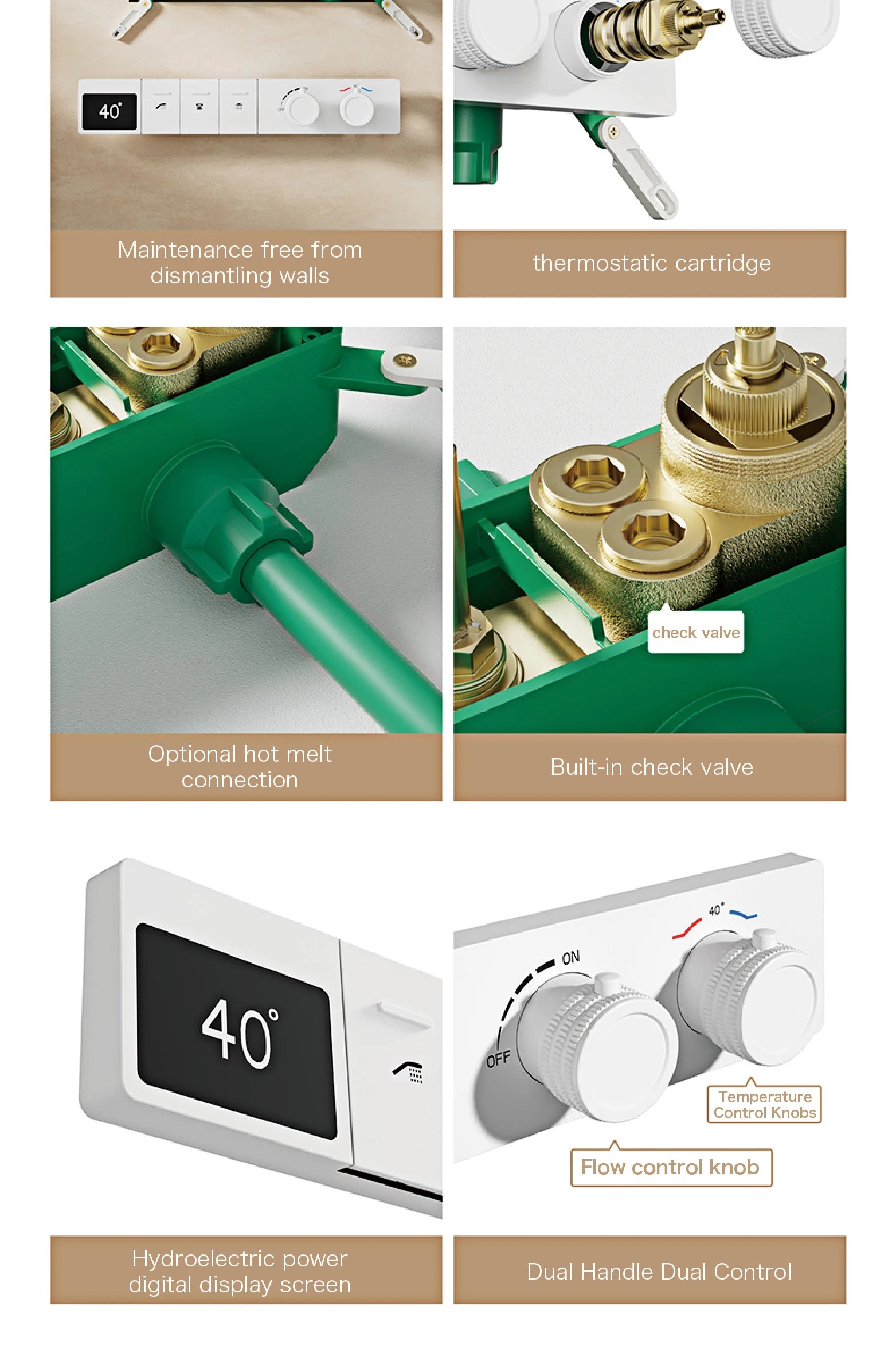 Intelligent digital display luxury white brass shower system with hidden design Dual control of hot & cold Wall mounted faucet