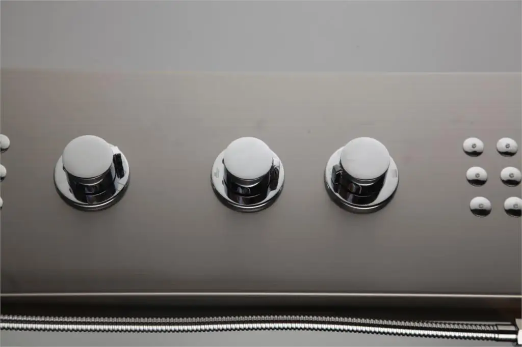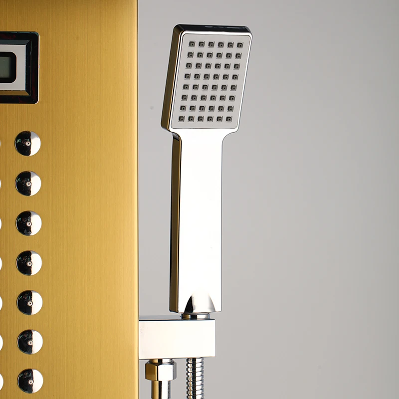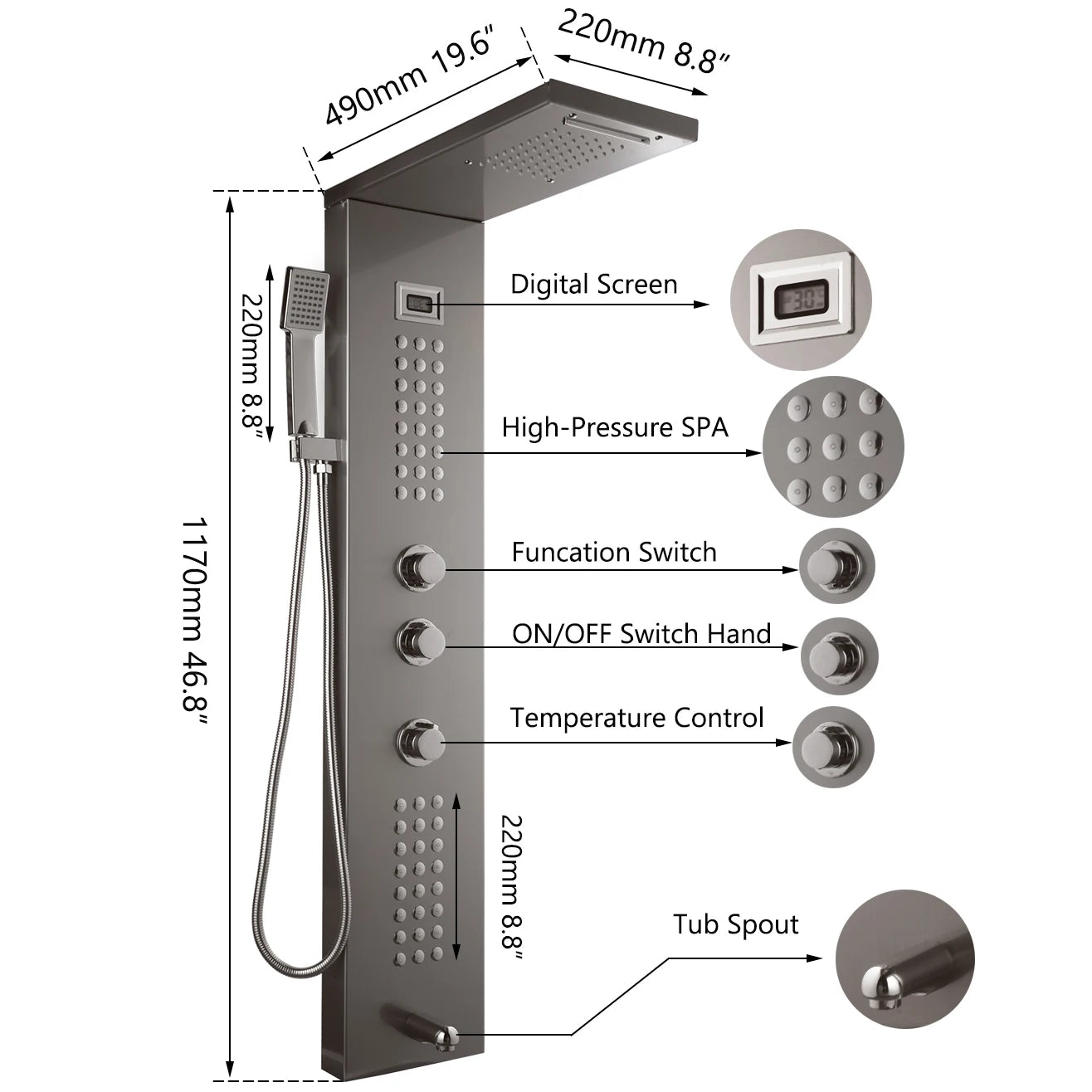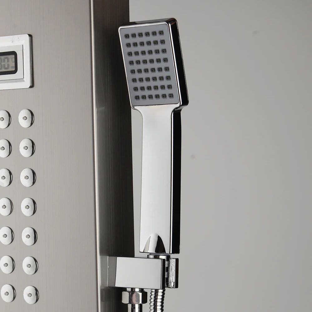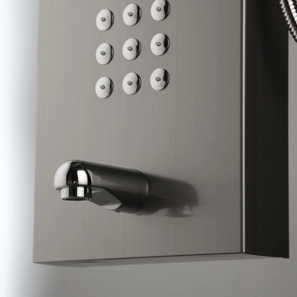 JIENI Brushed Nickel Wall Mounted Bathroom Shower Column 3 HandleS Hand Shower Tub Spout Massage System Bathtub Shower Panel
