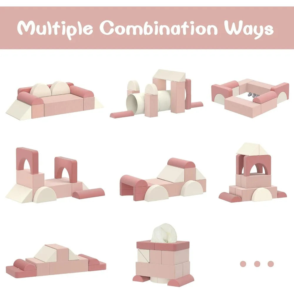 - 【12 DIY Modular Pieces】new kids play couch includes 12 different foam pieces and 1 tunnel which help toddlers stimulate endless creativity. From kids sofa, foam climbing blocks, throwing game with the tunnel to foam ball pit(8 balls included), the possibilities are endless. It provides hours of imaginative play and creativity.