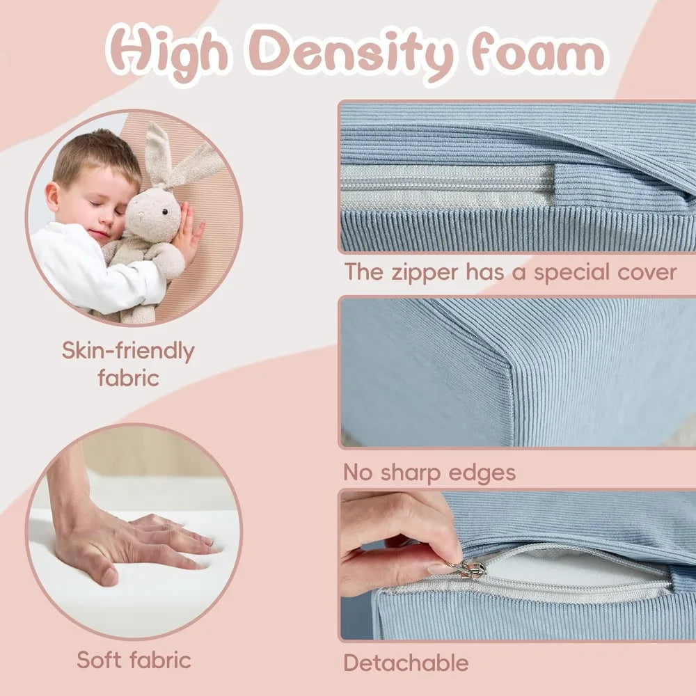 - 【High Quality Foam and Fabric】Compared other normal kids sofa, sofa is made of high quality corduroy that is skin-friendly and hign density foam that is not only suitable for sofa but for climbing blocks. The cover is removable and machine washable.