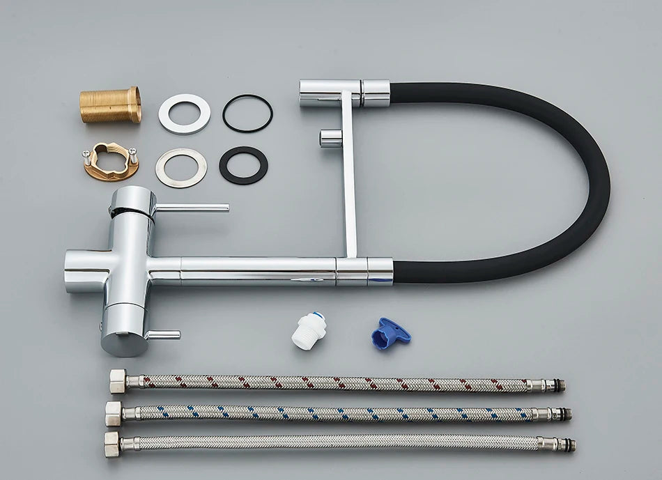 Chrome Brass Pure Water Filter Kitchen Faucet Deck Mounted Dual Handles Purified Water Outlet Kitchen Mixer Tap