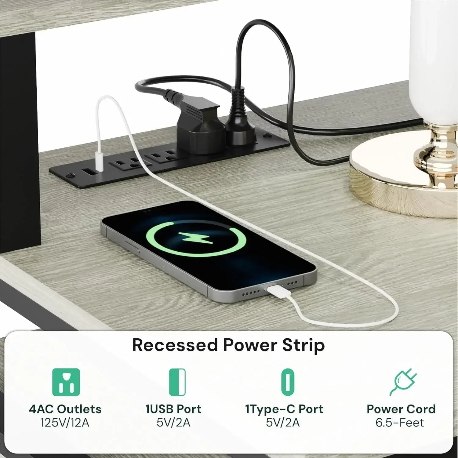 - Working Desk for Home Office with Power Outlets: The corner computer desk come with 4 AC outlets, a USB port, a Type-C port, 6.5ft long power supply cord can easily providing convenient charging for your laptop, phone and gaming devices, without leaving your desk