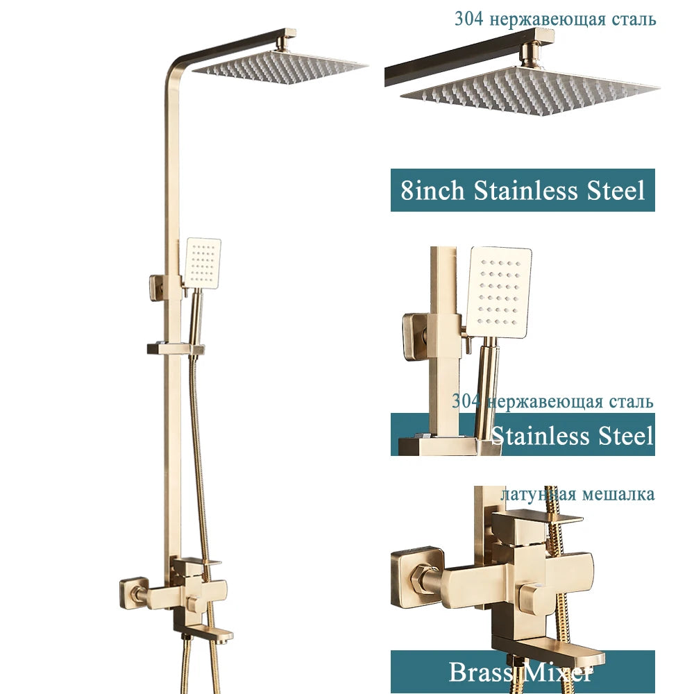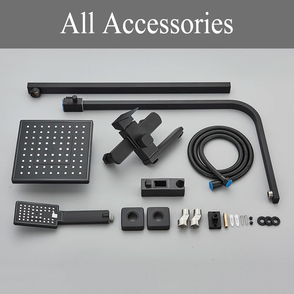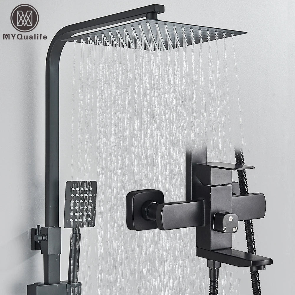 Matte Black Rainfall Shower Faucet Set 8 Inch Showerhead High Pressure Stainless Steel Bathtub Rotate Spout Bath Shower Mixer