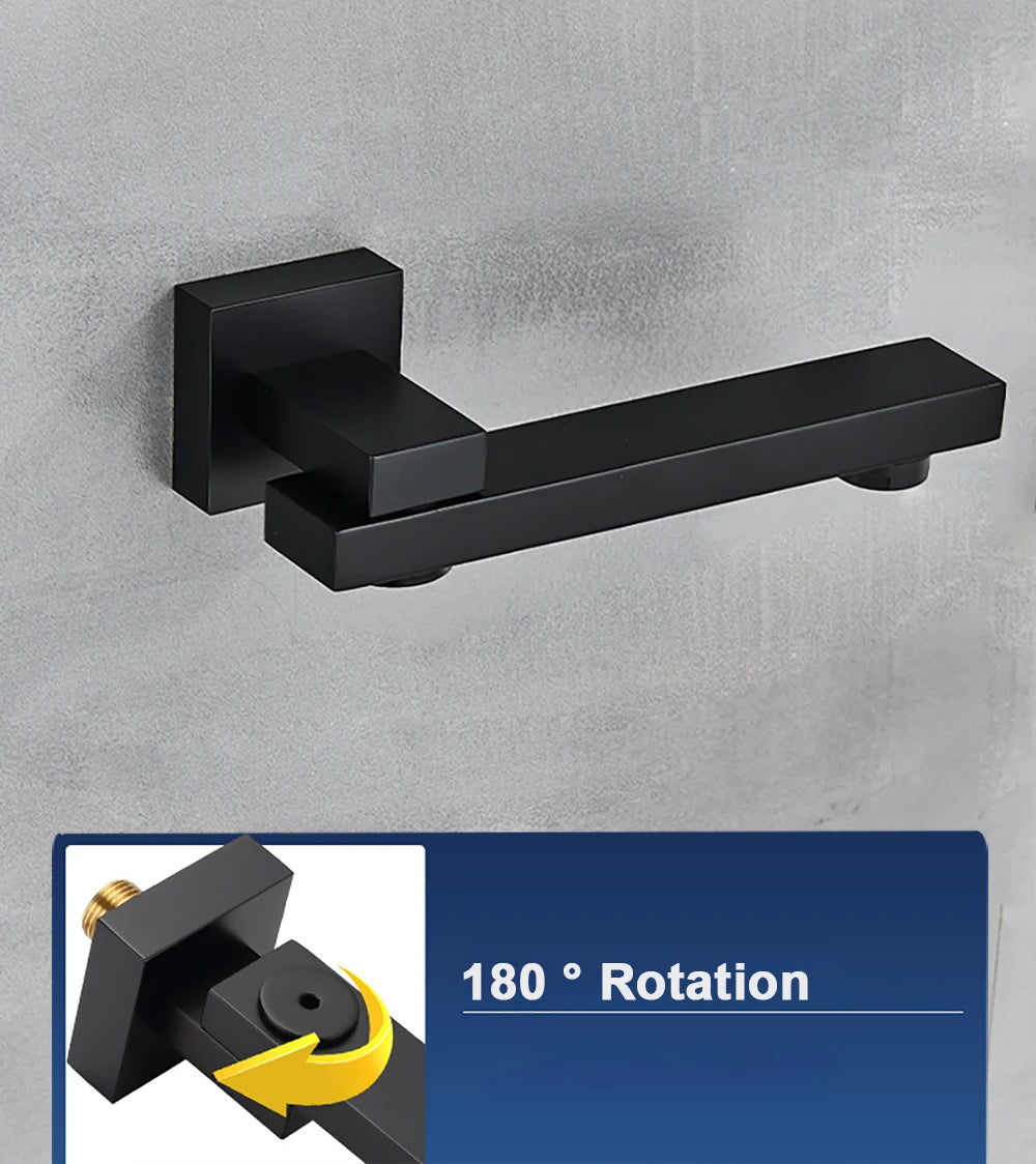 Matte Black Rotate Spout Basin Faucet Wall Mounted Bathroom Hot & Cold Water Mixer Tap Concealed Install Washing Crane Faucets