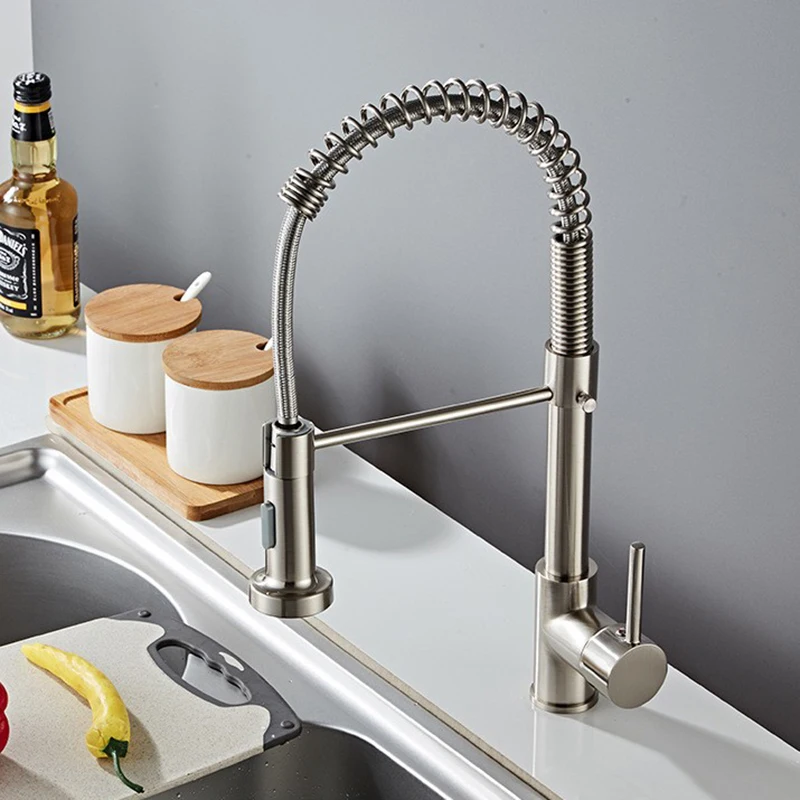 Matte Pull Down Kitchen Faucet Chrome Dual Modes Nozzle Hot Cold Water Mixer Crane Tap Brass Spring Kitchen Sink Faucets