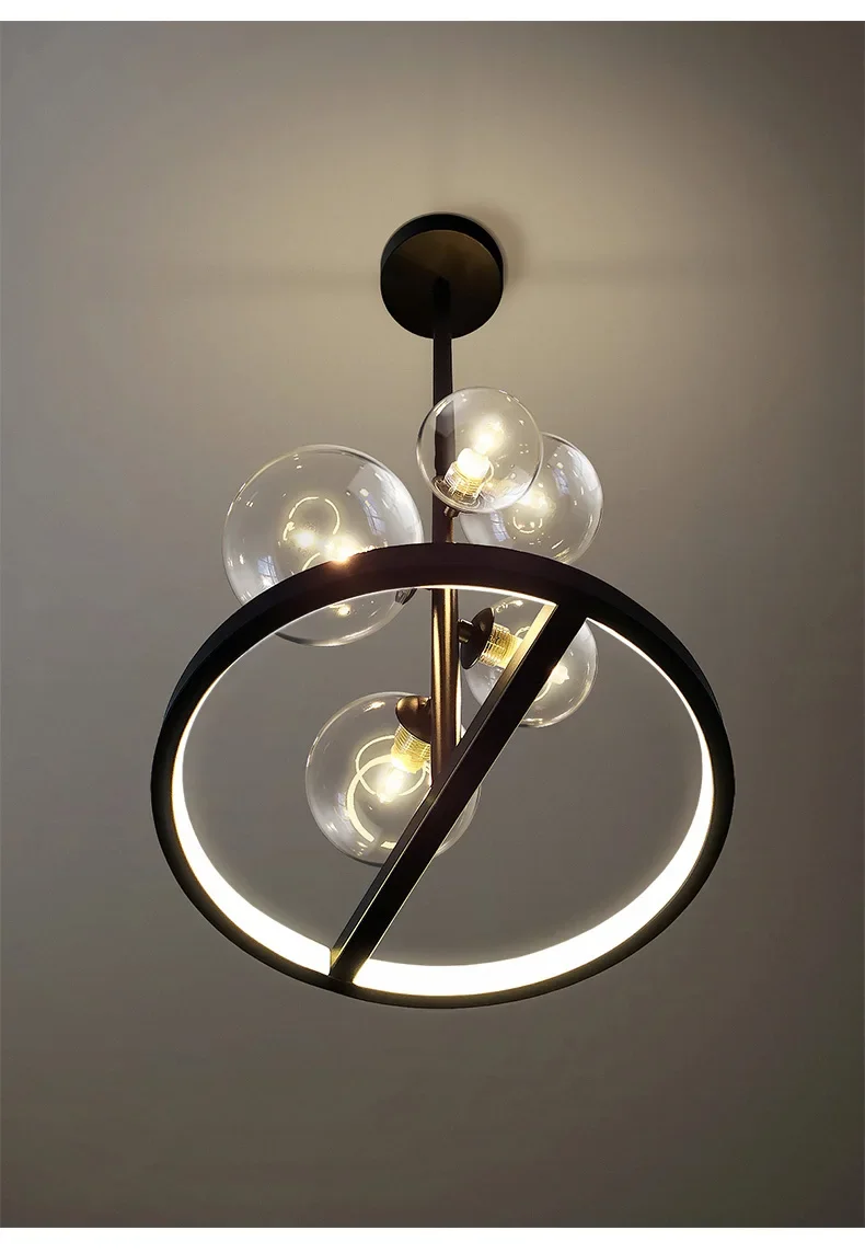 Nordic Style LED Chandelier Ring Glass Ball Black Dining Living Room Bar Bedroom Ceiling Pendant Lamps Home Decoration Lighting