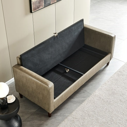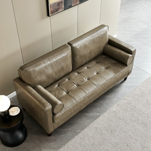 Product Name: Modern Mid-Century Vegan Leather Sofa (Khaki)