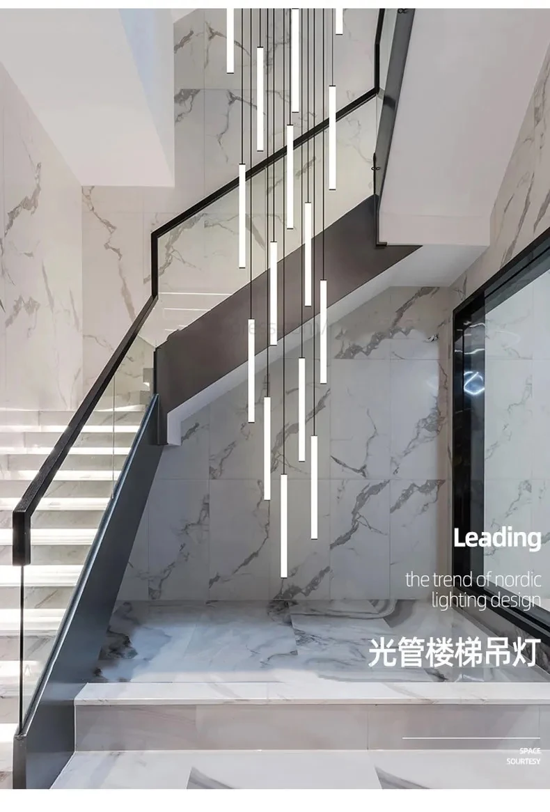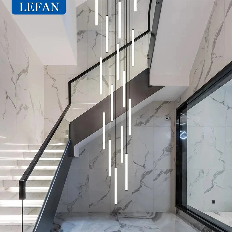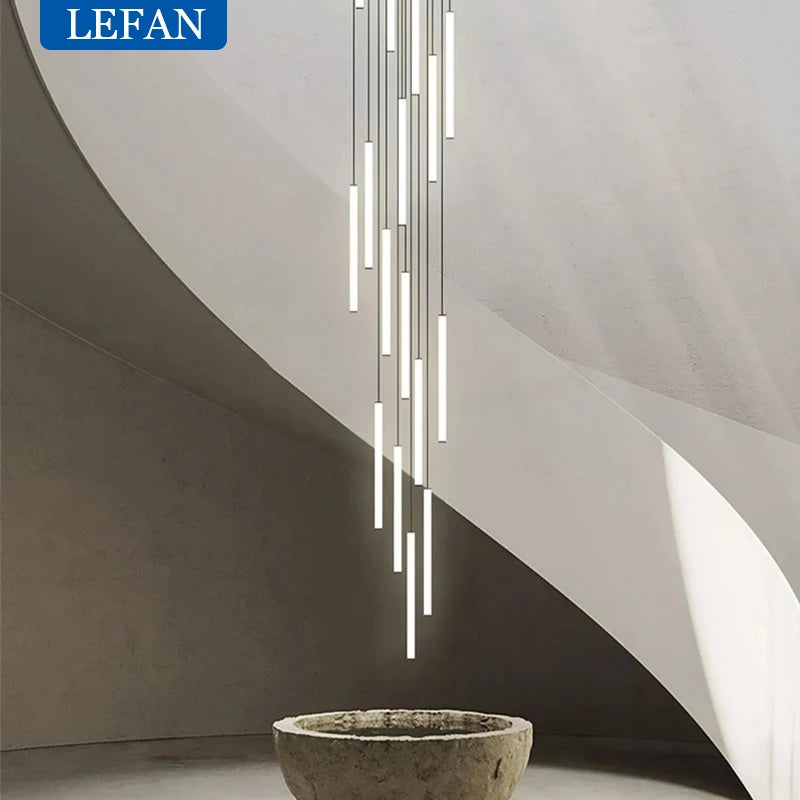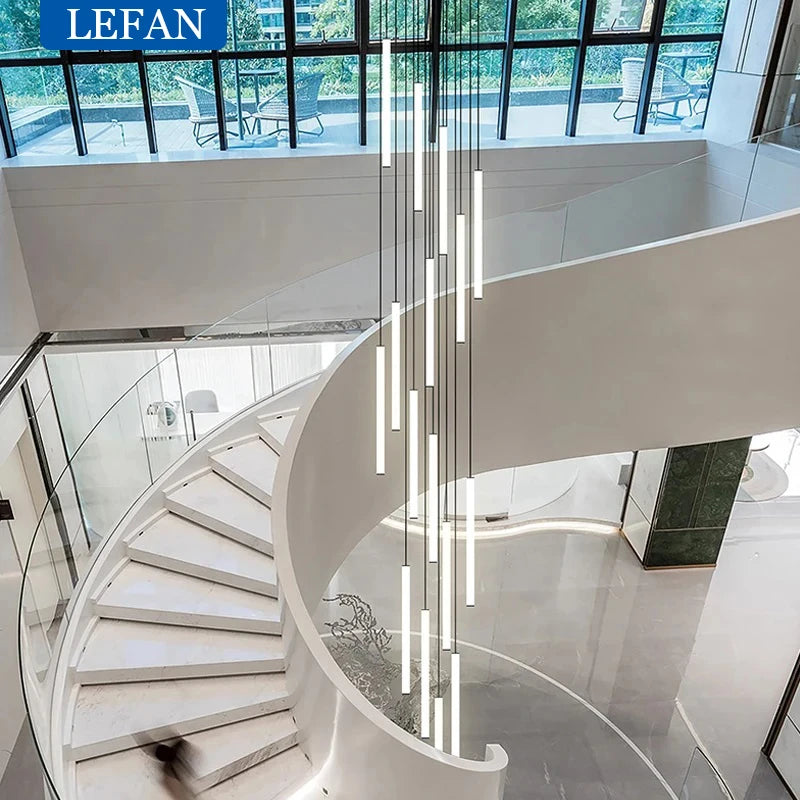 Modern Staircase LED Chandelier Living Room Lamp Designer Home Decoration Hanging Villa Dining Table Rotating Penthouse