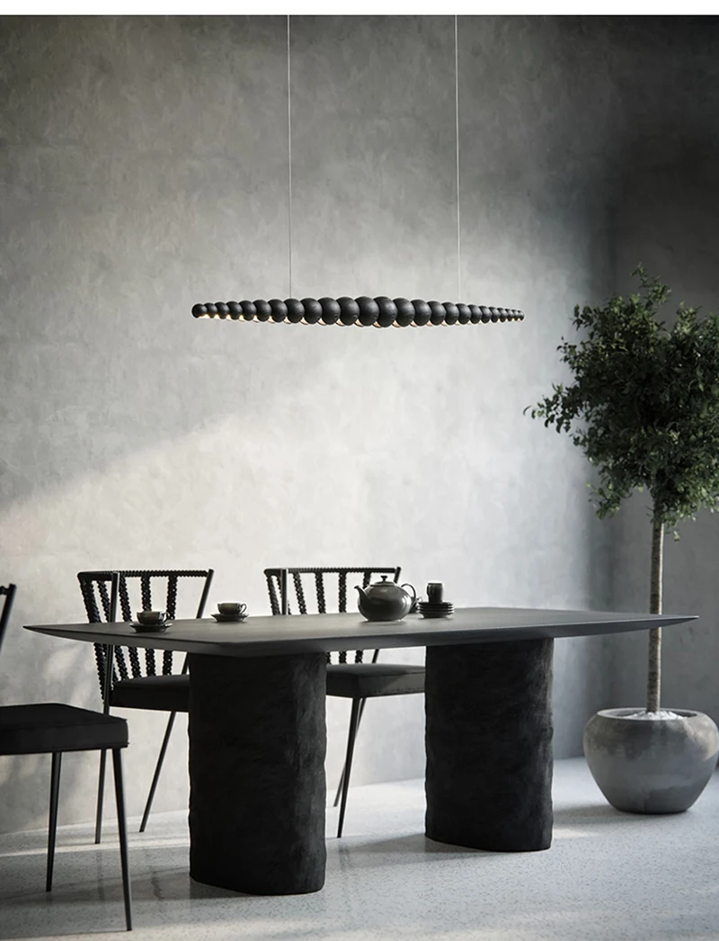 Modern Wooden Beads Long Linear LED Pendant Lights: Modern Wooden Beads Long Linear LED Pendant Lights