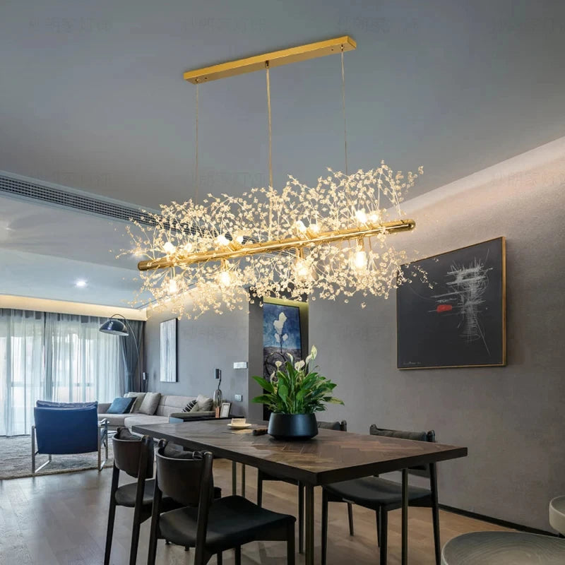 Nordic Dandelion Long Led Chandelier for Dining Room Light Fixture Snowflake Suspension Living Room Pendant Lamp Indoor Lighting