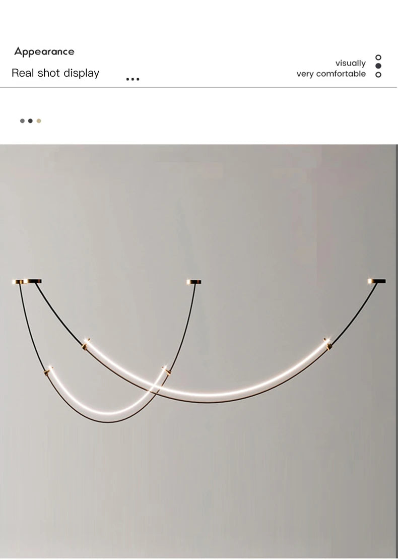Nordic Line Led Pendant Lights for Living Dining Room Bar Counter Black Chandelier Home Decoration Lighting Suspension Design
