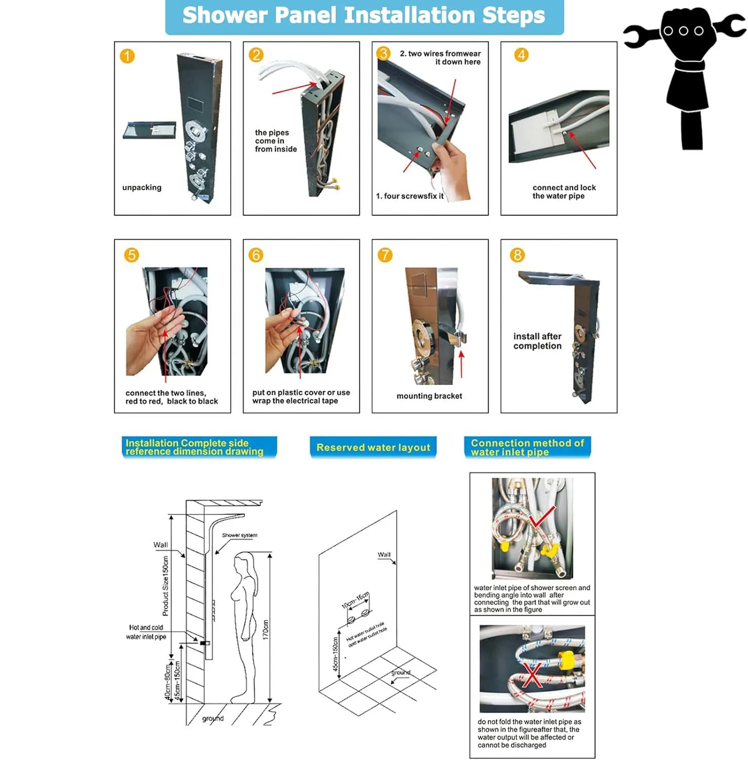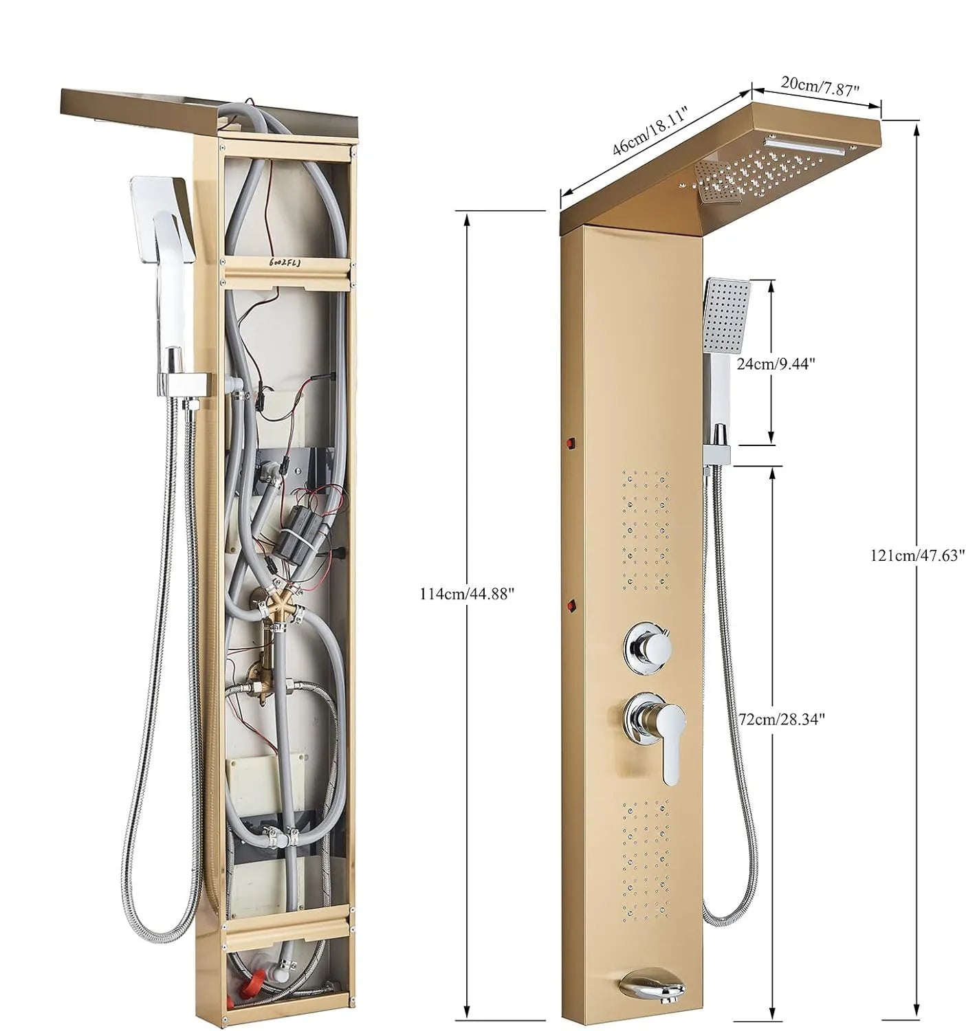 100% stronger and more durable: The shower panel is made of strong and highly durable 304 stainless steel. environmental material; Anti-rust and high temperature resistant for durability. Long service life time. safe to use.