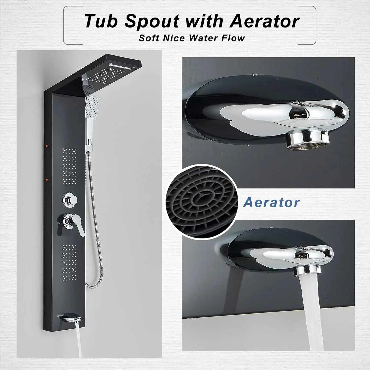6 in 1 Multi-Function Shower Panel: This 6-in-1 shower system has a rainfall, waterfall, massage jet and sap jets, hand shower and tub spout, providing an unforgettable shower experience to relax and feel good. All functions work independently to ensure proper water pressure.