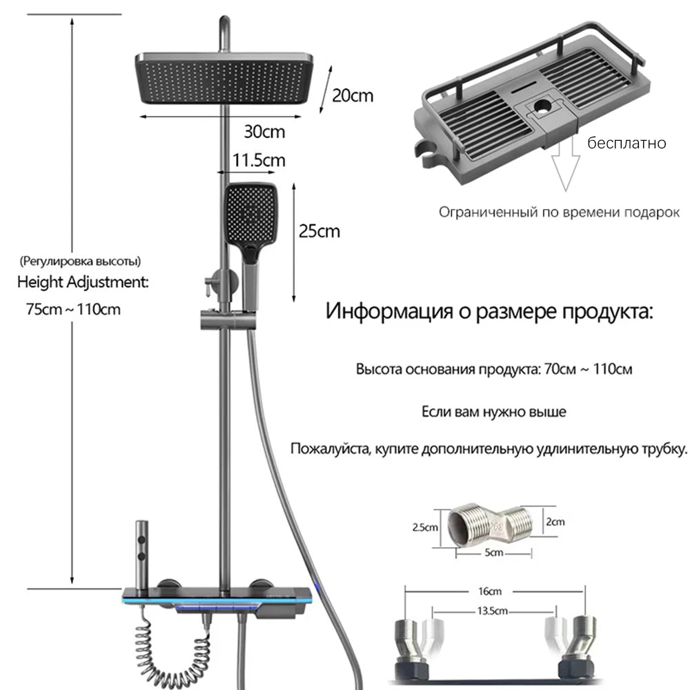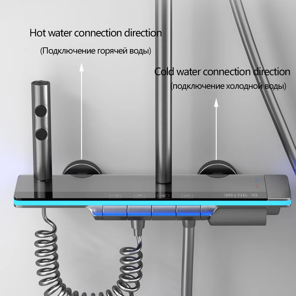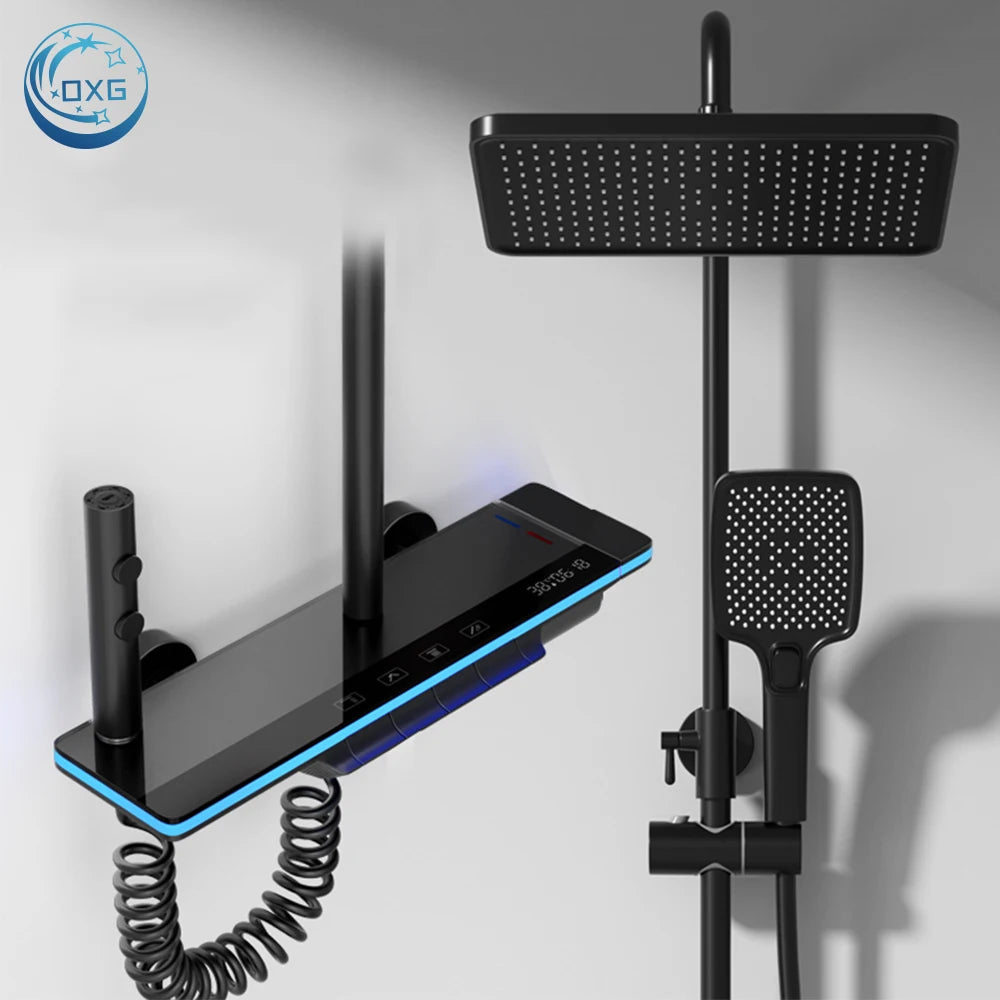 OXG Brass Bathroom Faucet Thermostatic Shower Faucet Set With Digital Display Ambient Light Shower System Rainfall Shower Set