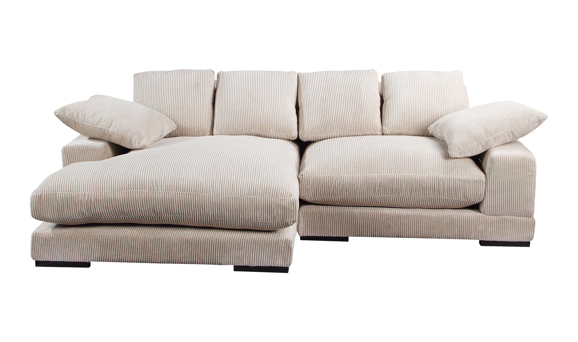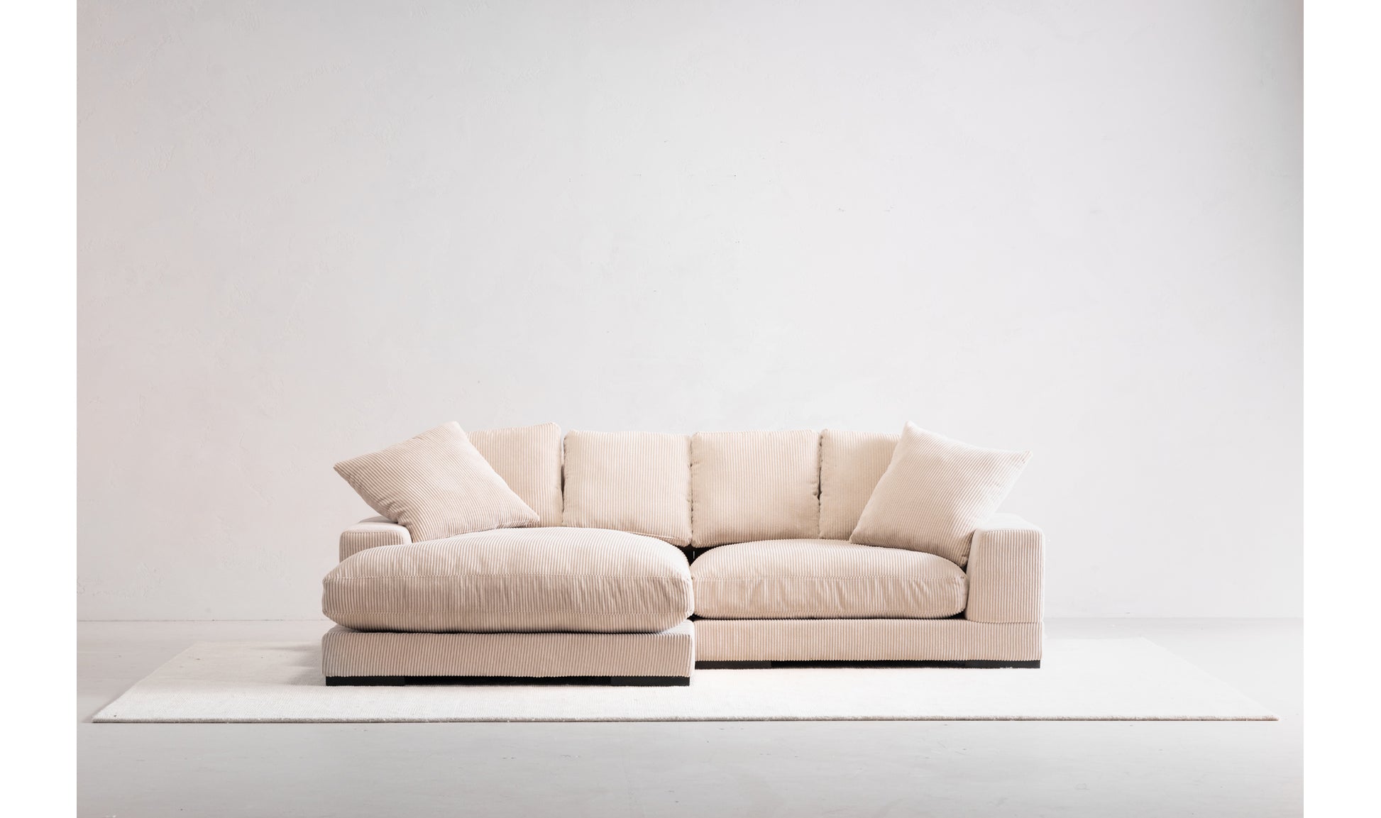 A fusion of comfort and elegance with clean lines and plush cushions, the Plunge sectional is masterfully crafted to maximize space and provide unparalleled relaxation. Its versatile flip chaise feature allows a left or right-side orientation that effortlessly adapts to create a sanctuary of style and repose, while its improved channeling and filling distribution ensures soft landings and comfort for years to come.