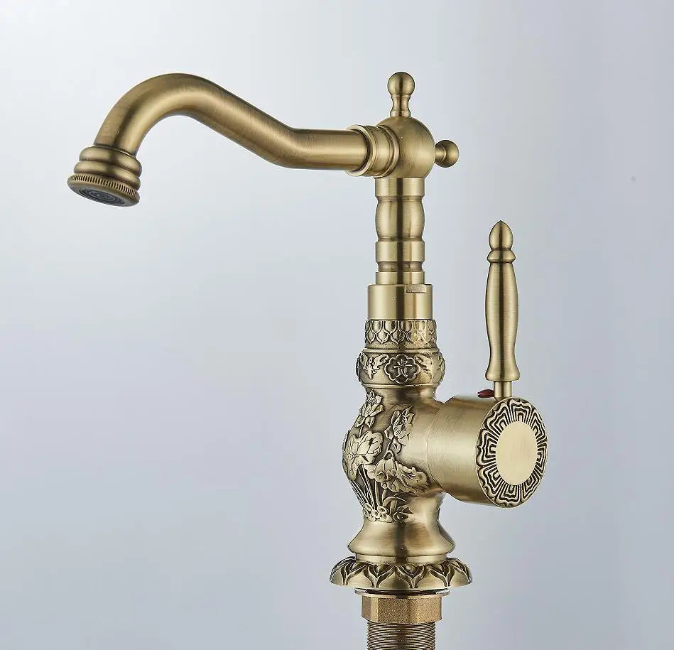 POIQIHY Basin Faucets Antique Brass Faucet Basin Carving Tap Rotation Single Handle Tap Mixer Taps Bathroom Vessel Sink Faucet