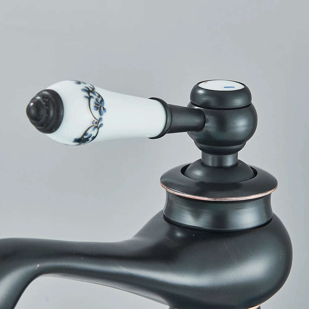 Quyanre Black Bronze Retro Antique Brass Basin Faucet Single Handle Mixer Tap 360 Rotation Kitchen Faucet Kitchen Mixer Taps