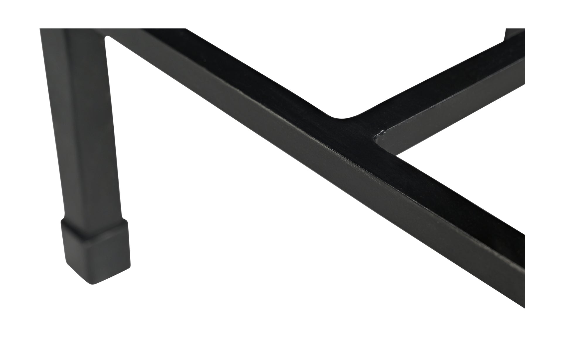 Anchored by a sleek iron base adorned with hammered details, the River side table's square base sculpture detail injects an unmistakable artistic flair that is crowned with a soft Italian Botticino marble top. The striking contrast of textures enhances visual interest that captivates and endures.