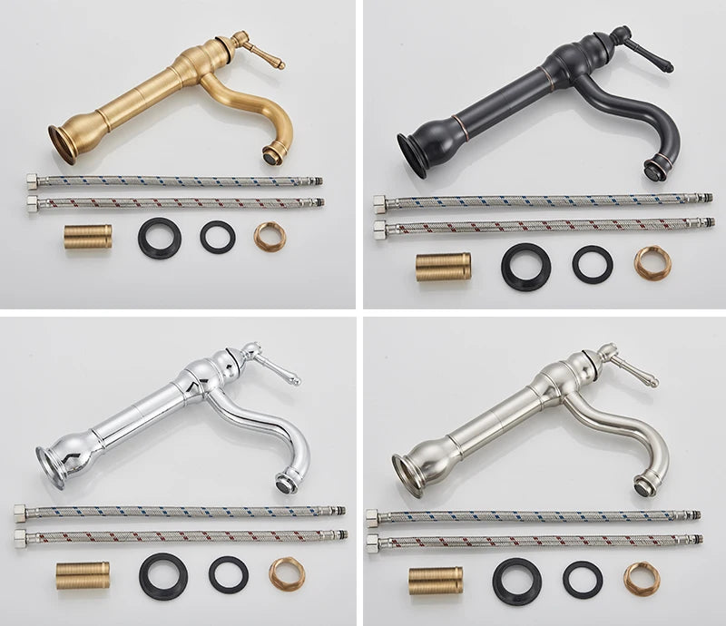 Rozin Antique Brass Basin Faucet 5 Colors Deck Mounted Single Handle Bathroom Crane Long Spout Lavatory Sink Hot Cold Mixer Tap
