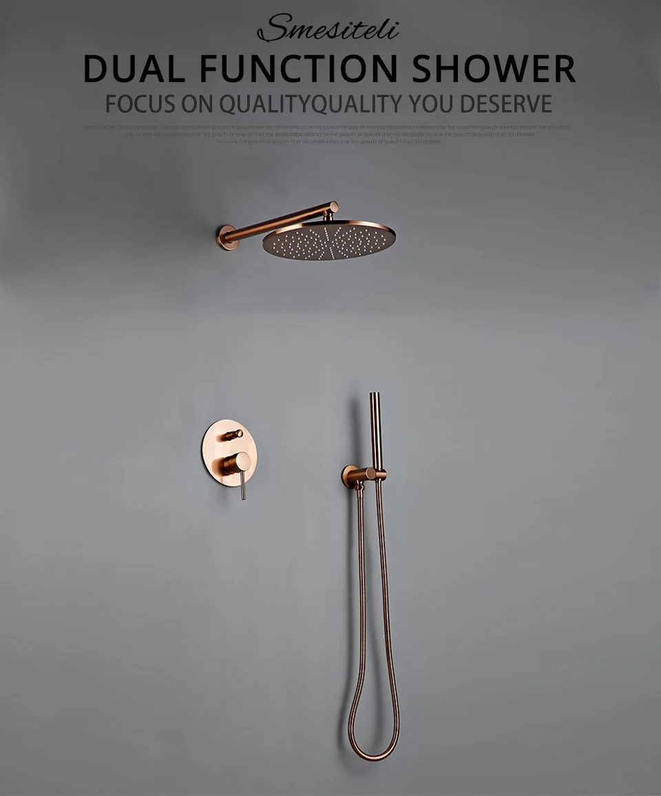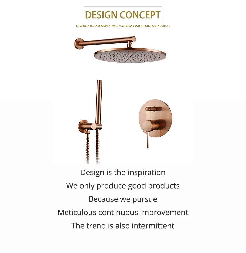 Shower Set Bath Brushed Rose Gold Rainfall Bathroom Faucet Brass Diverter Mixer Tap Hand Held 8-12" Head Wall Arm Valve Kit