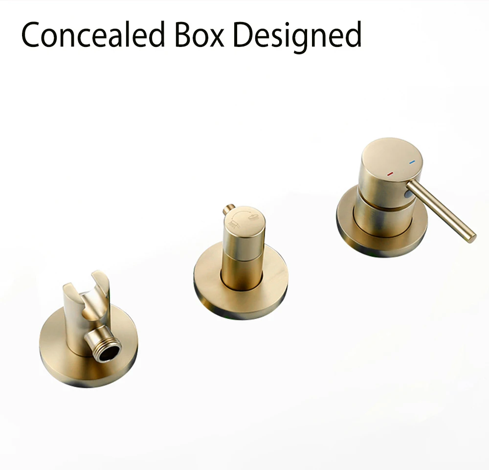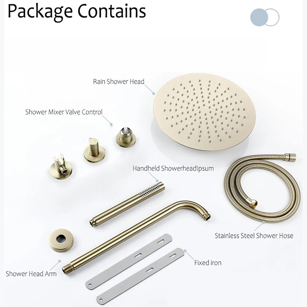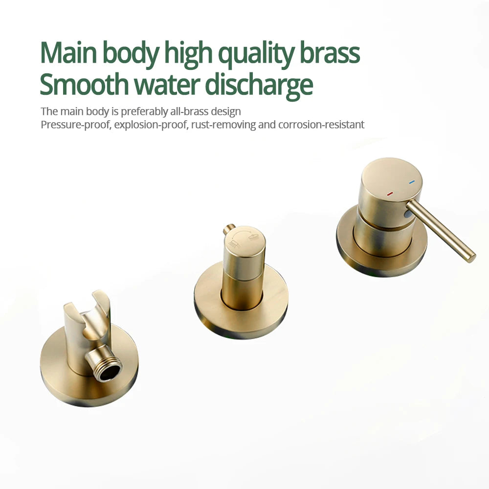 Smesiteli Shower System Set Brushed Gold Wall Mount Bathroom Faucet Hidden Brass Hot Cold Valve Bath Shower Rain Shower Kit