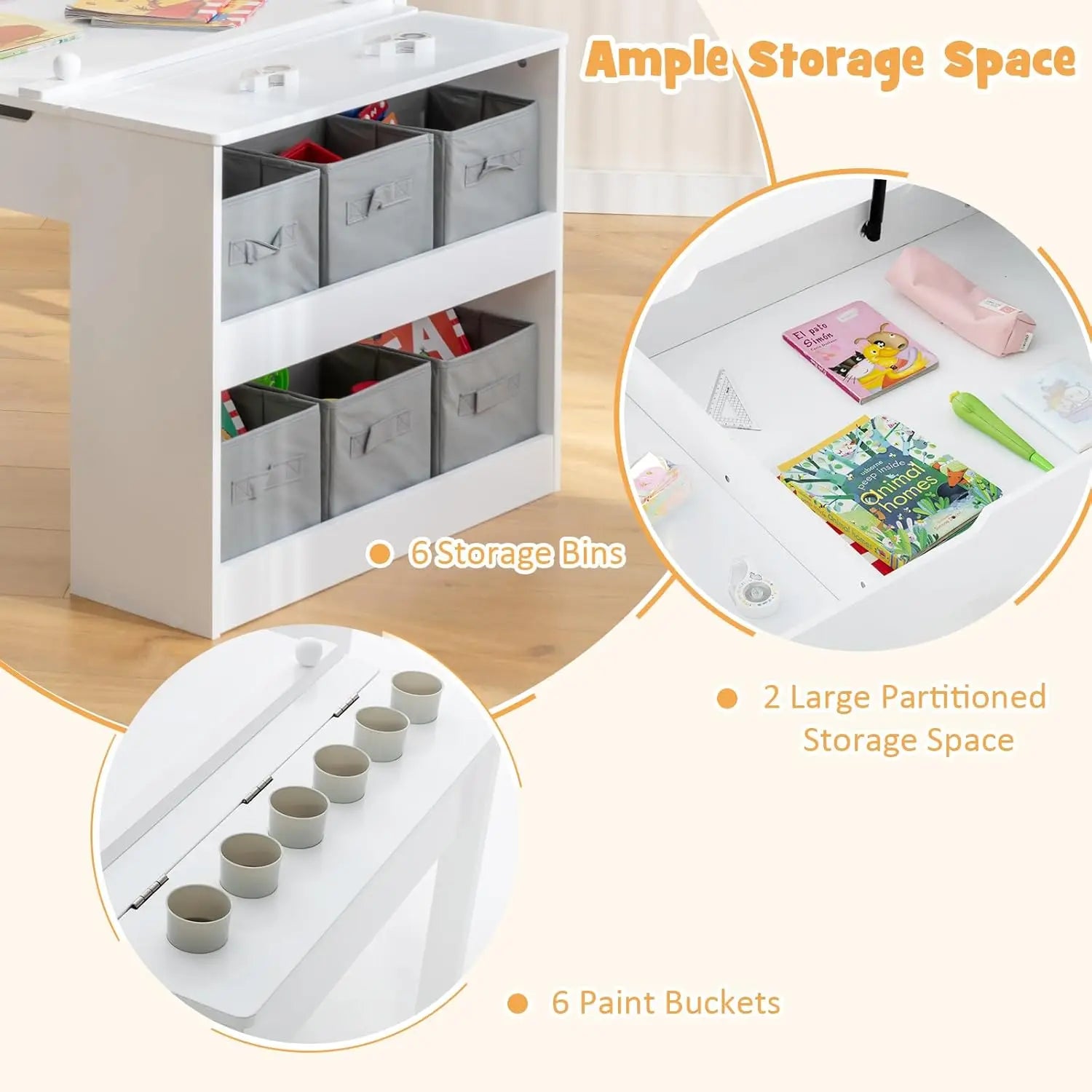 Toddler Craft Play Wood Activity Desk with 2 Chairs Storage