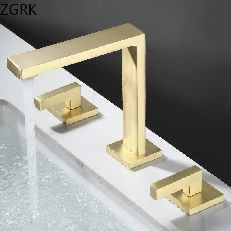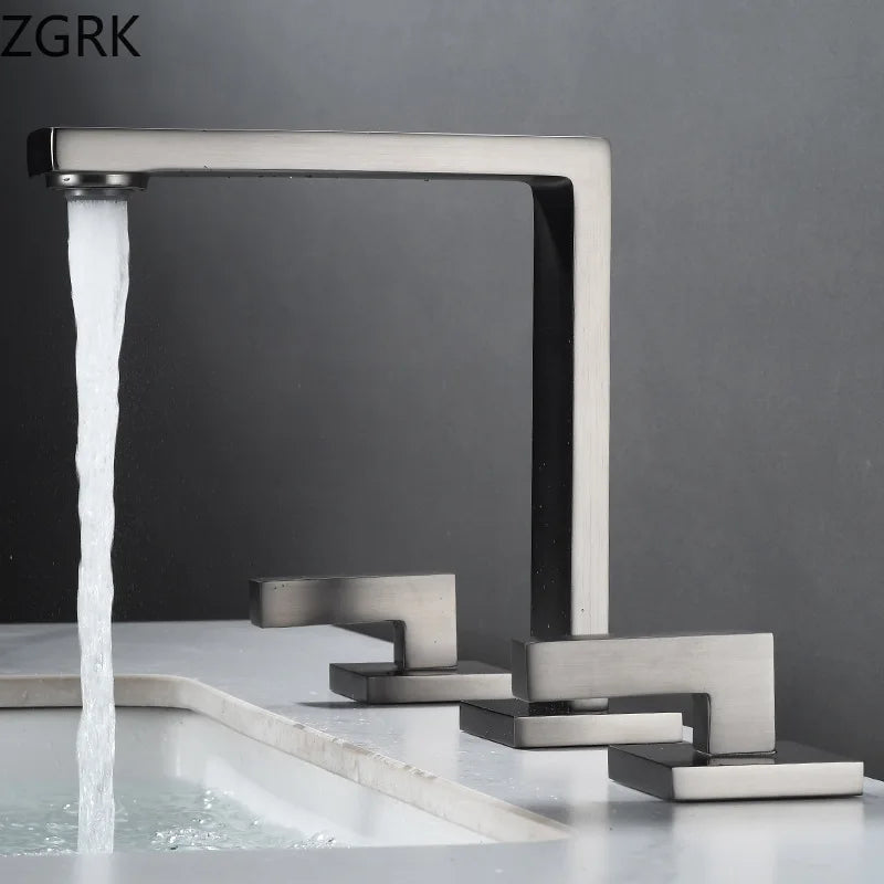 Three Hole Basin Faucet Solid Brass Gun Grey Bathroom Faucet Cold and Hot Water Black Mixer Tap 3 Pieces Bathtub torneiras de cozinha