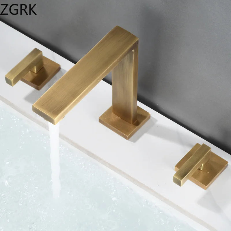Three Hole Basin Faucet Brass Gun Grey Bathroom Faucet Cold and Hot Water Black Mixer Tap 3 Pieces Bathtub torneiras de cozinha