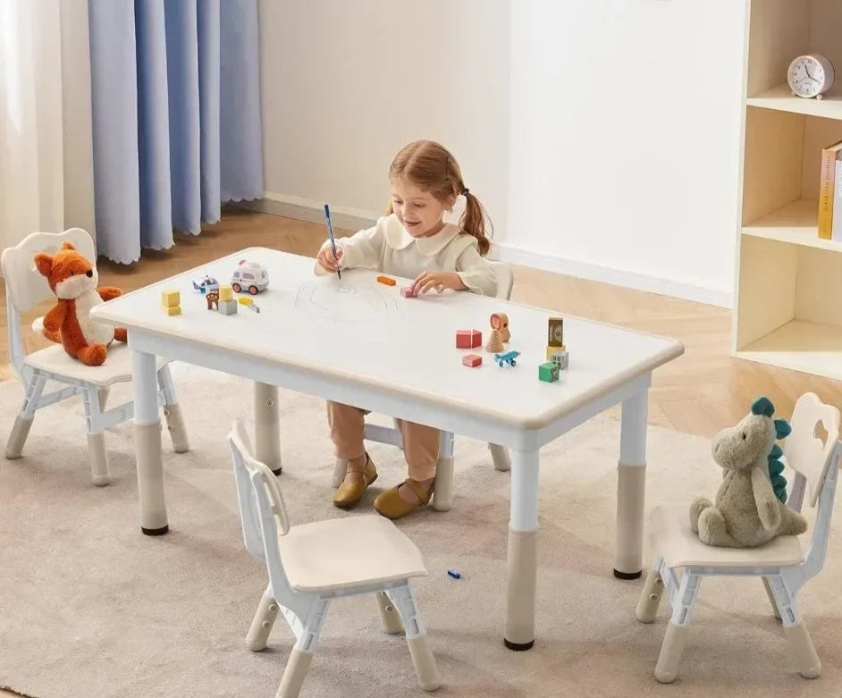 Modern White + Natural Wood Toddler Table and Chairs Set for 4