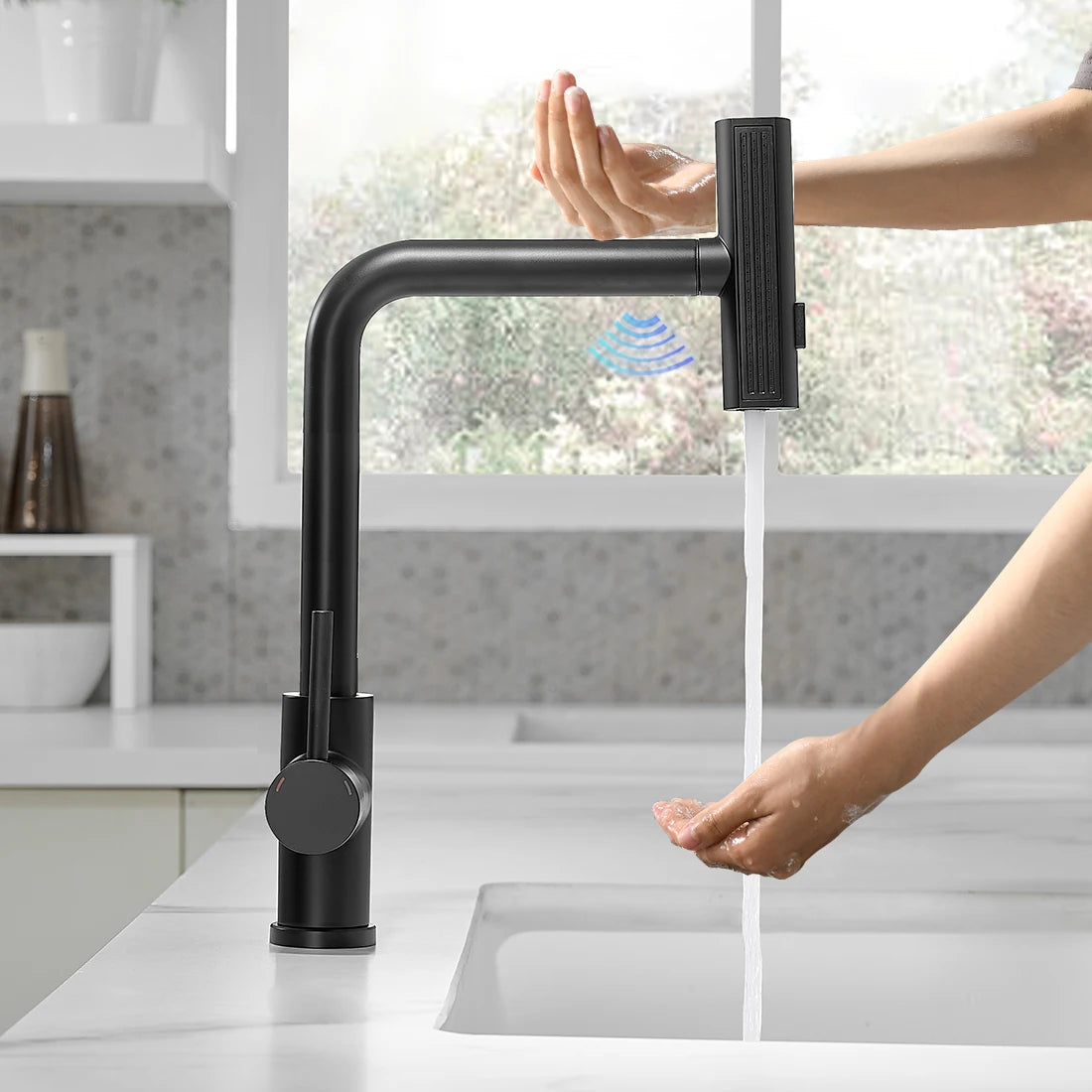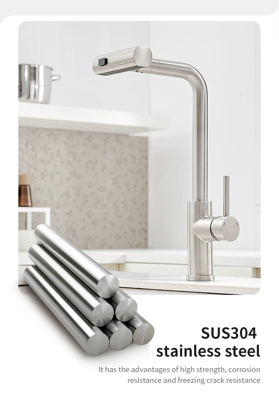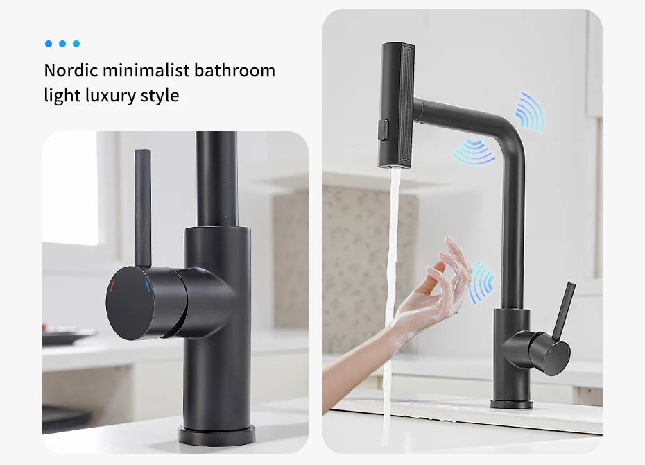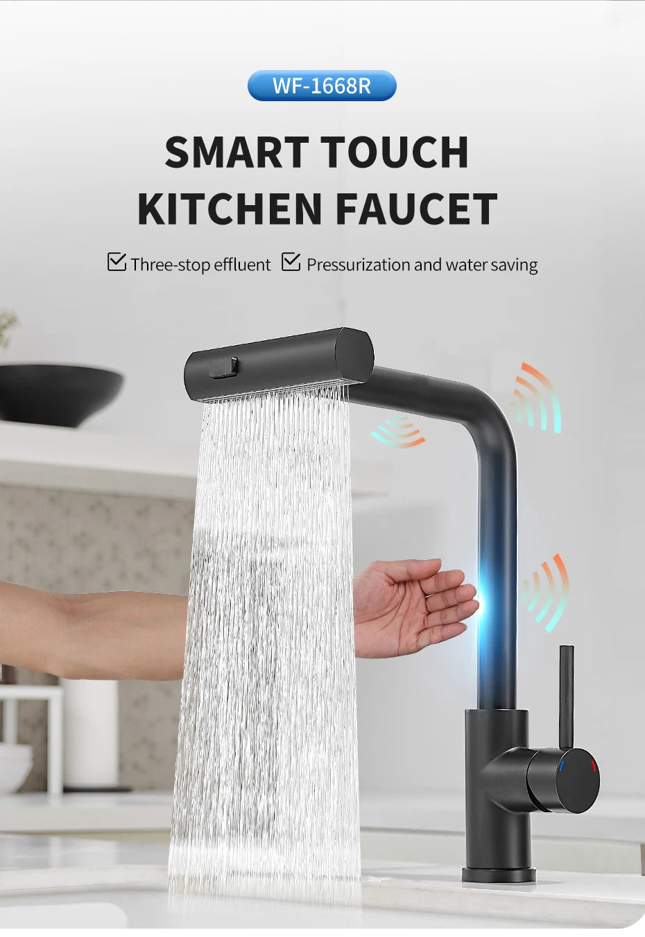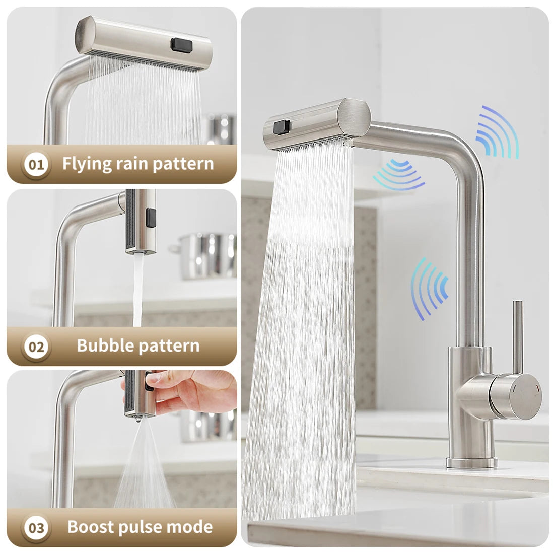Touch Sense Kitchen Faucet 3 Mode Black Waterfall Crane Brushed Nickel Sensor Pull Out Hot Cold Mixer Gray Sink Water Tap 1668