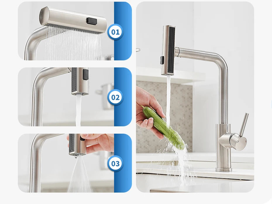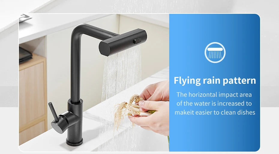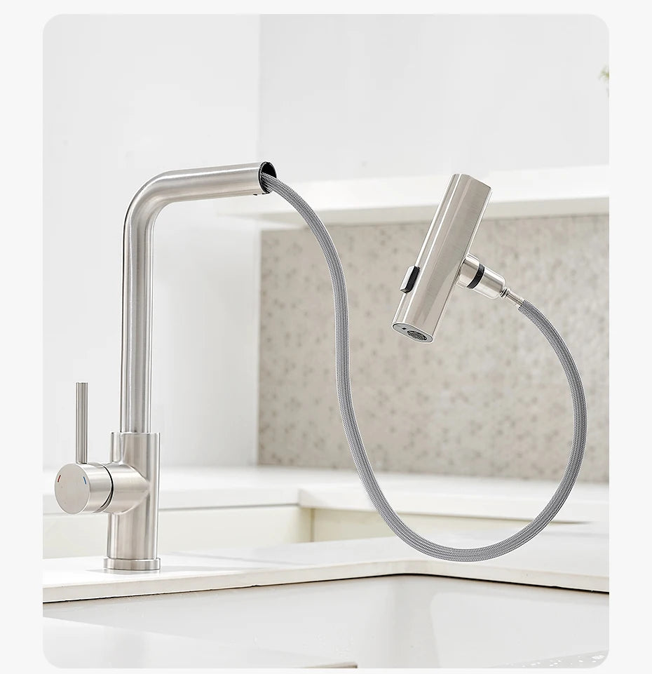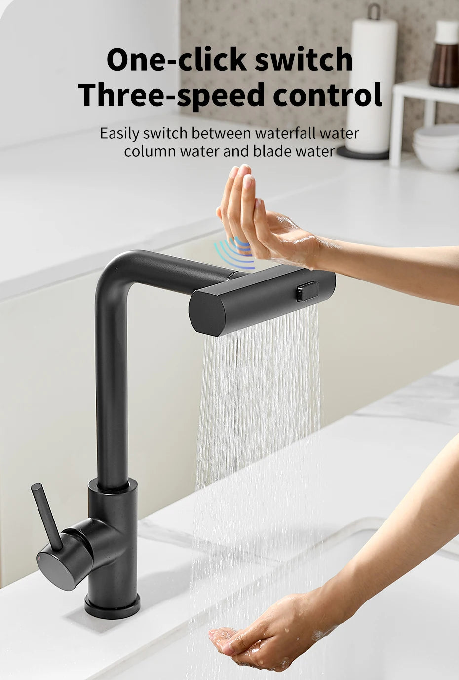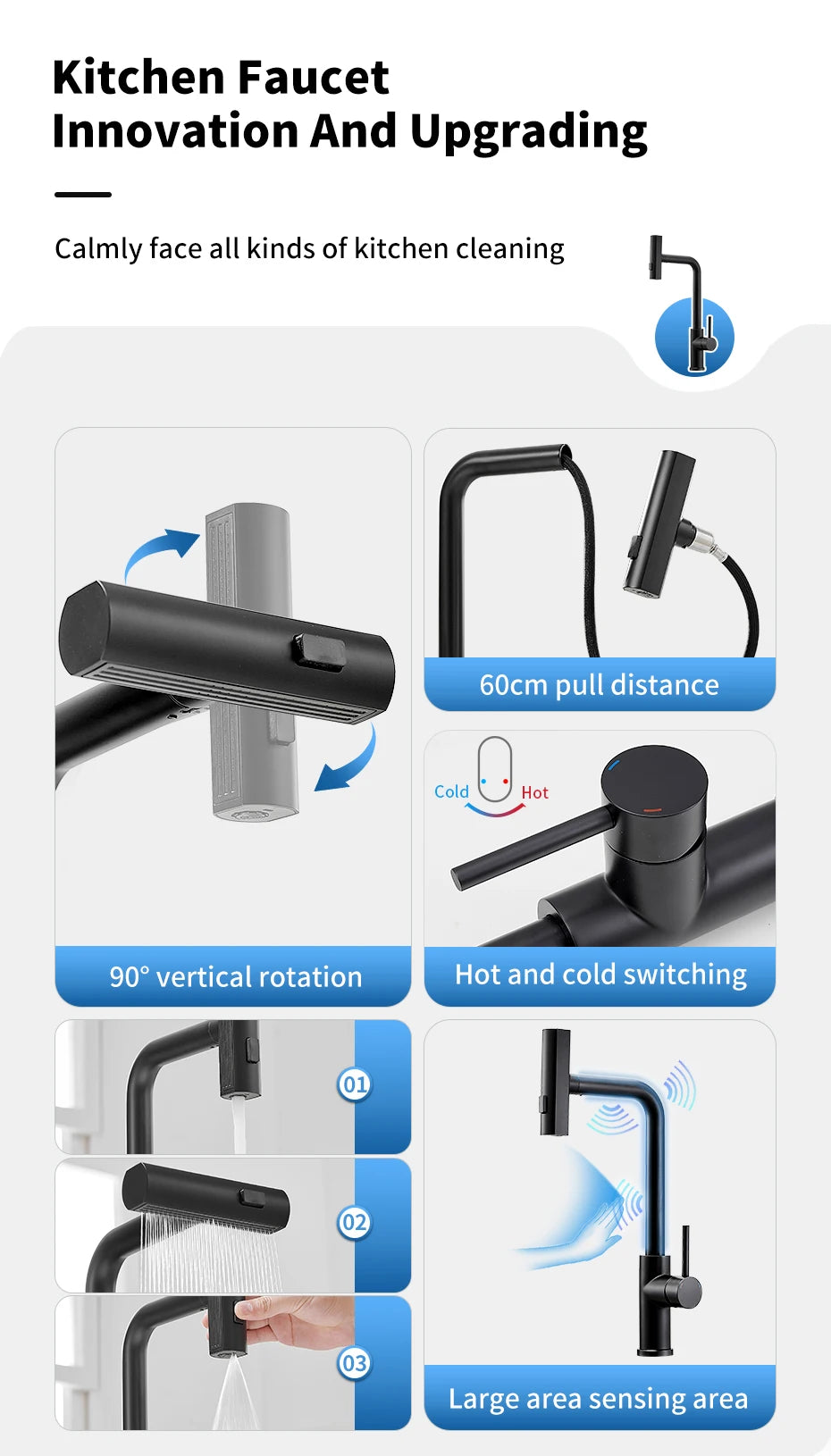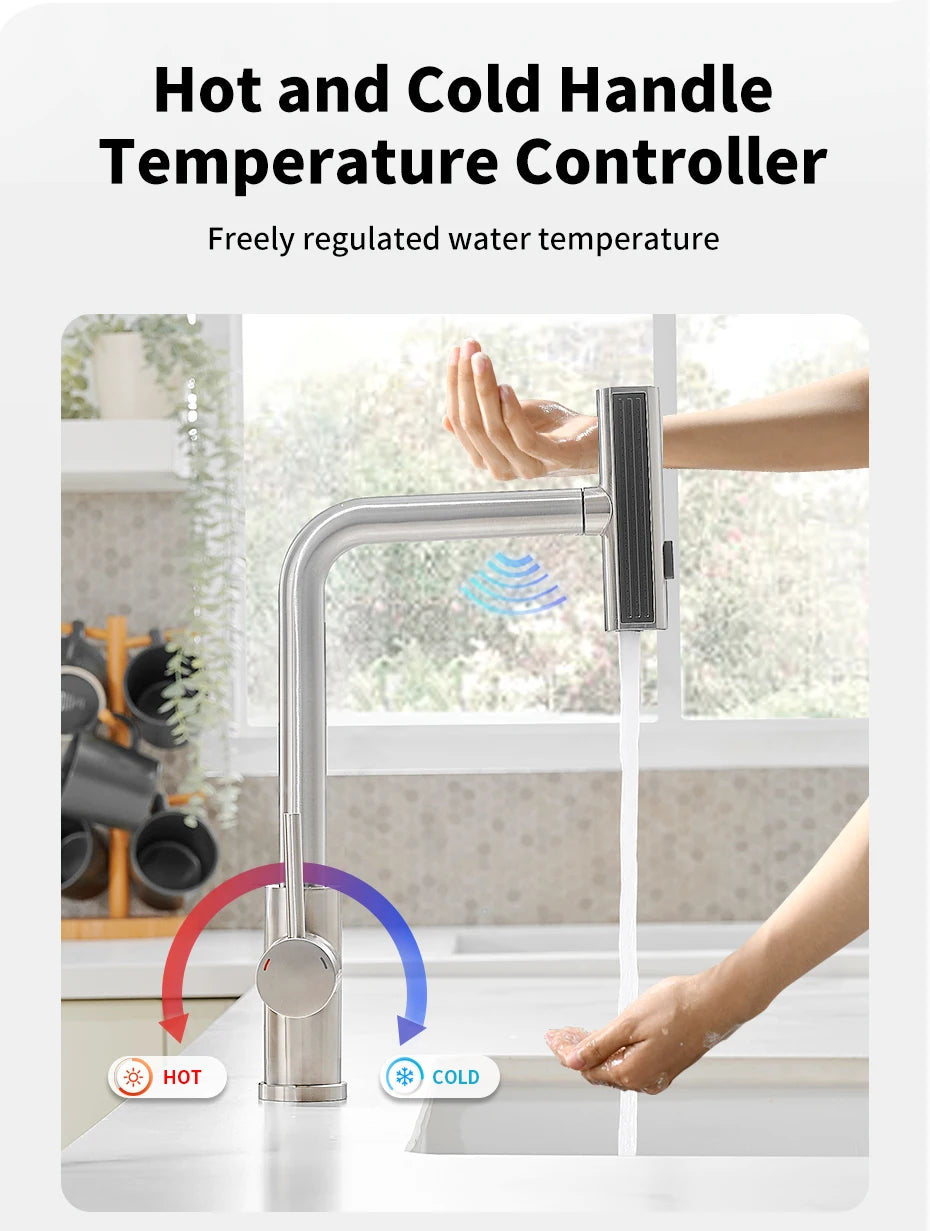 Touch Sense Kitchen Faucet 3 Mode Black Waterfall Crane Brushed Nickel Sensor Pull Out Hot Cold Mixer Gray Sink Water Tap 1668
