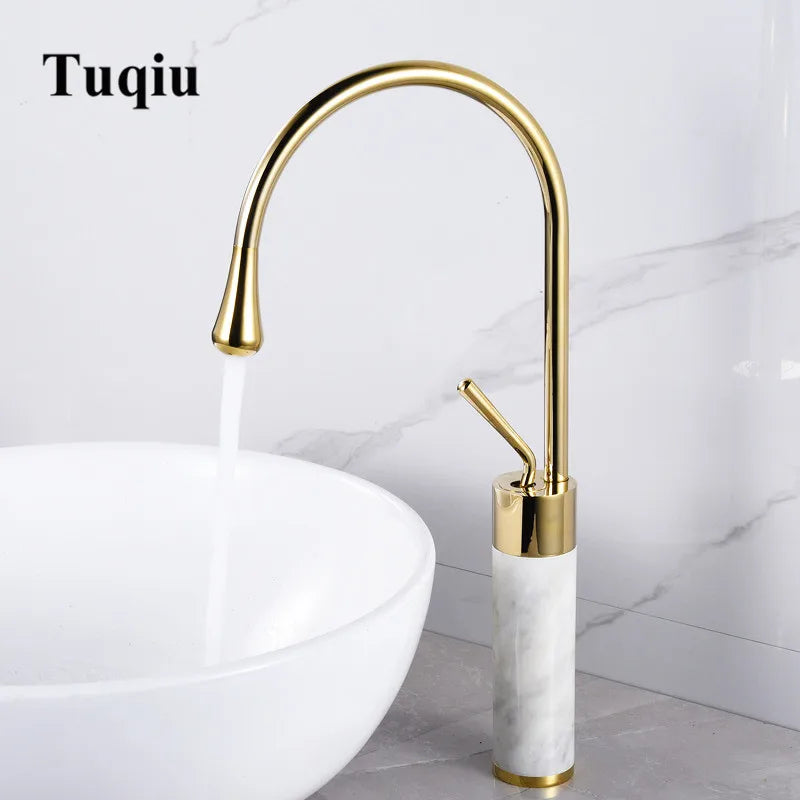 Tuqiu Bathroom Faucet Gold Marble Basin Faucet Hot and Cold Sink Faucet Brass Faucet Kitchen Faucet Swivel Sink Water Crane