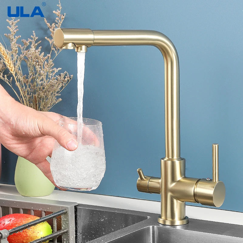 ULA Filtered Kitchen Faucet Gold Purifier Faucet Dual Sprayer Drinking Water Mixer Tap Nozzle Brass Kitchen Sink Mixer Torneira