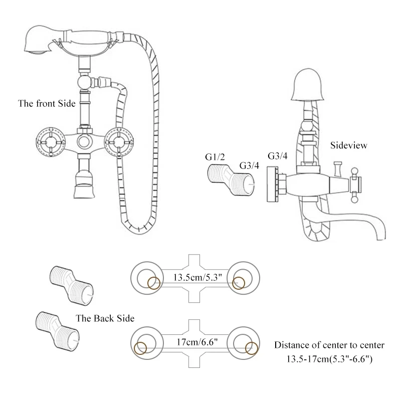 Distance of center to center: 13.5-17cm(5.3"-6.6")