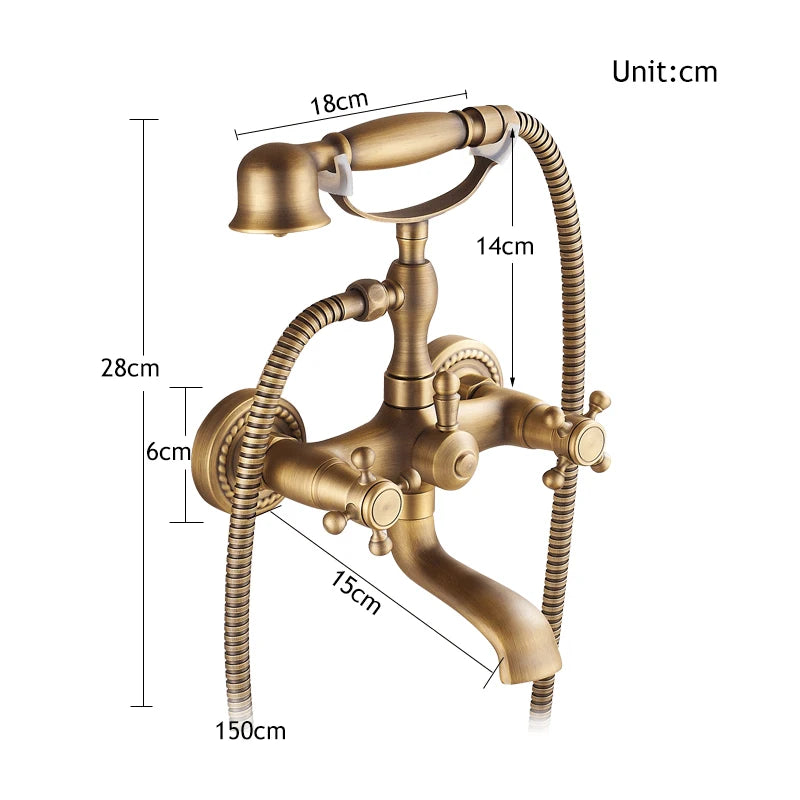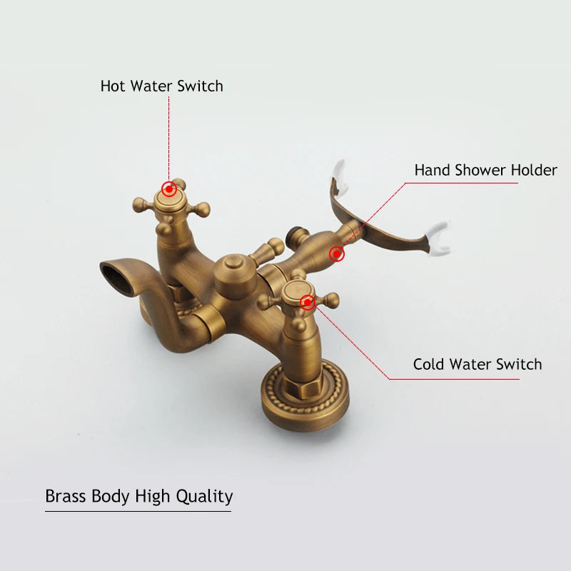 ULGKSD Antique Bronze Bathtub Shower Faucet W/ Brass Spray Wall Mount Hot and Cold Water Mixer Tap Para Bath Shower