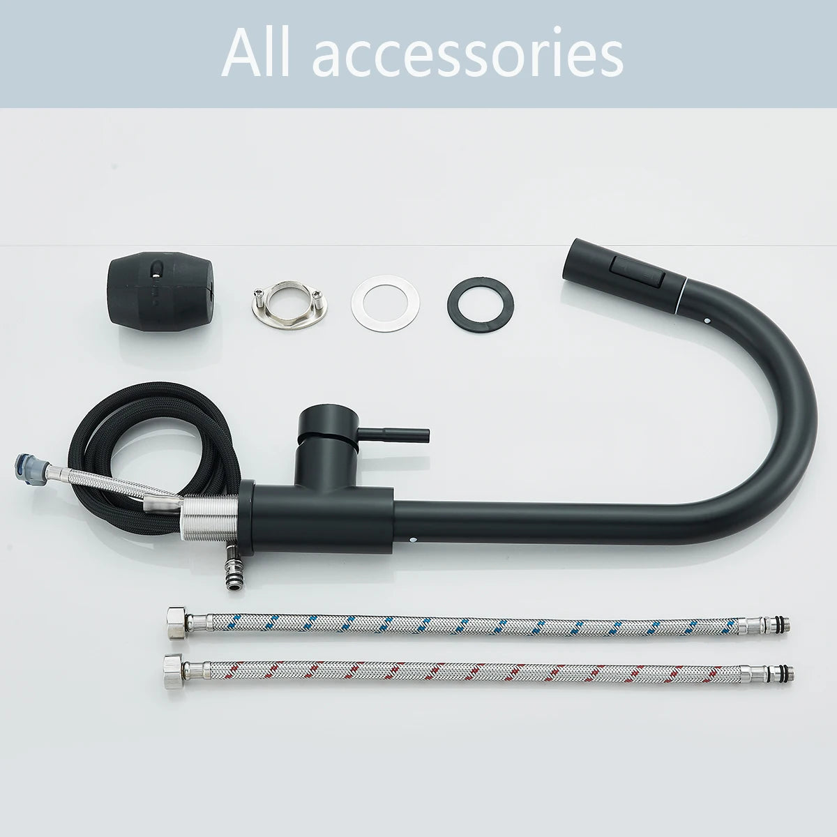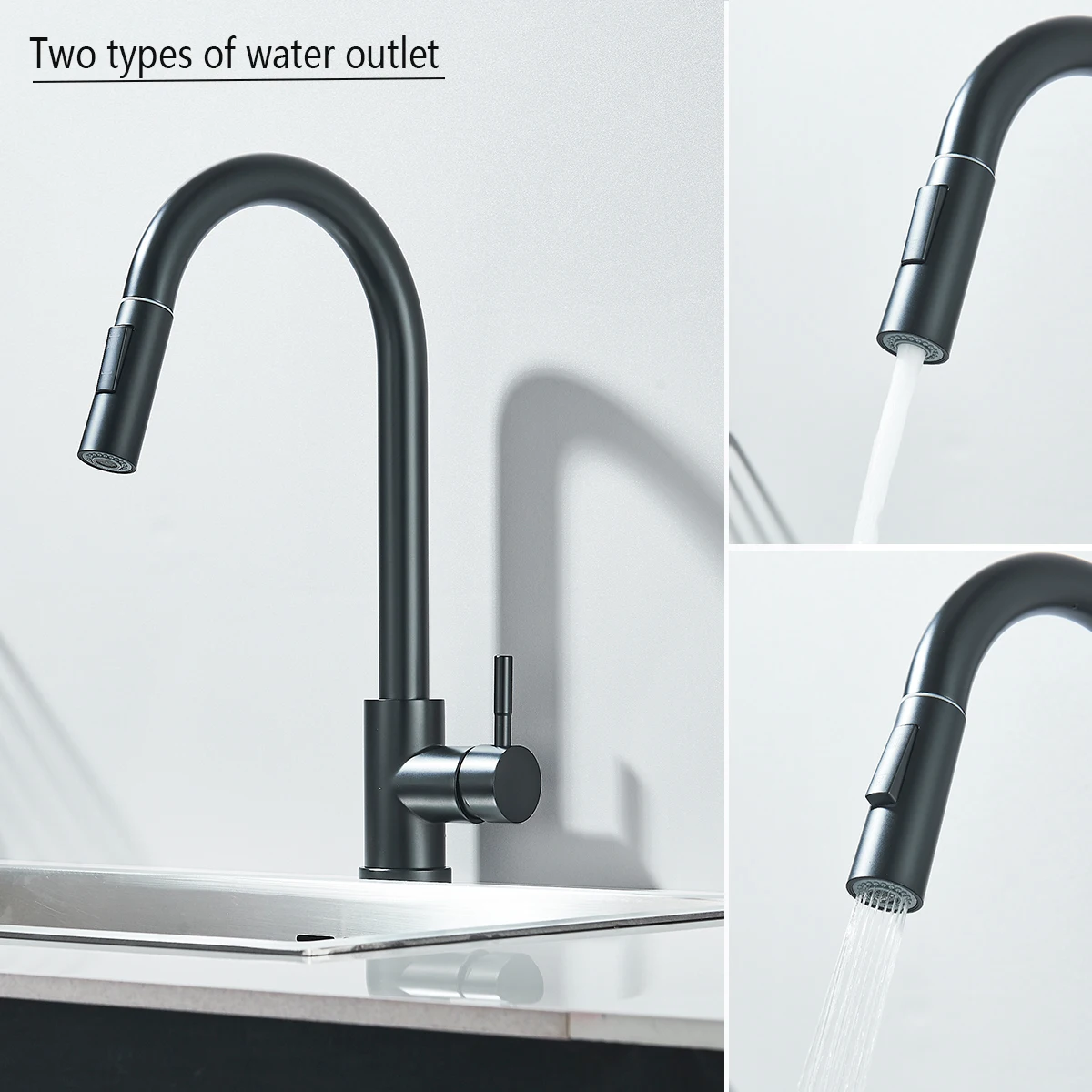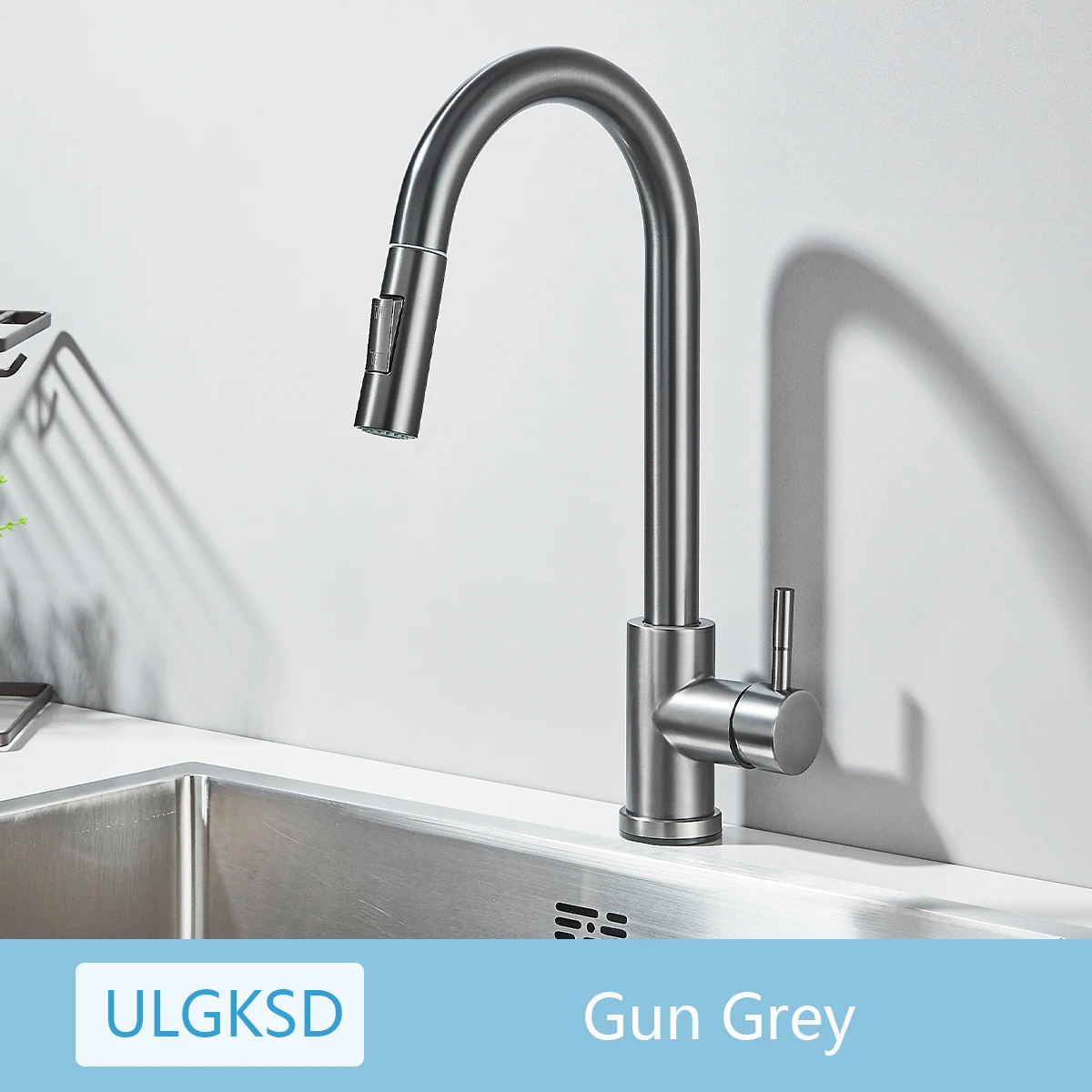 ULGKSD Kitchen Faucet Pull Out 2 Modes Stream Spray Hot And Cold Water Mixer 360 Rotate Single Handle Deck Mounted Crane Tap