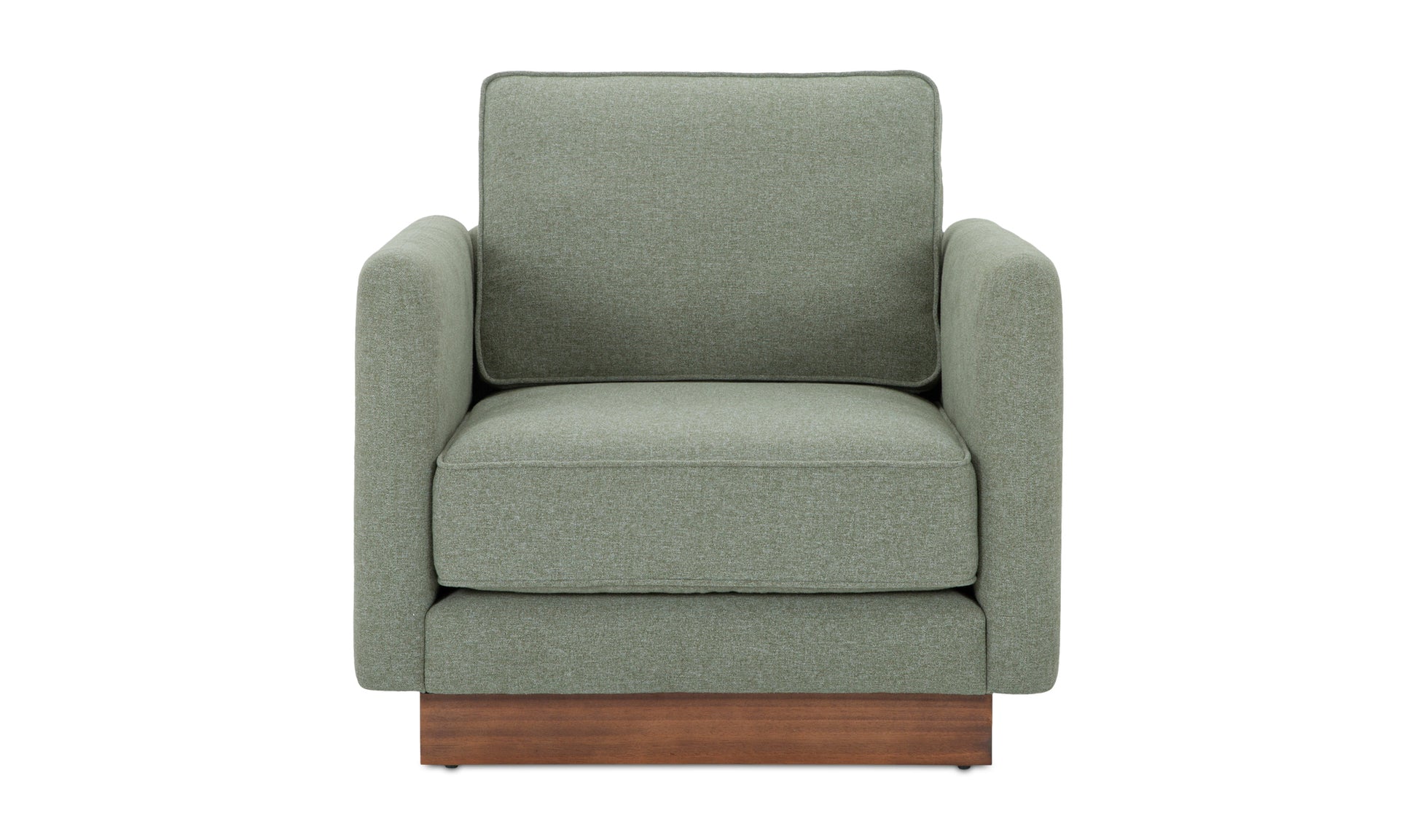 The Vernon accent chair blends mid-century design with modern functionality. It features a wooden plinth base for an elevated, lighter appearance. This chair offers unmatched comfort with removable cushions. Upholstered in durable, OEKO-TEX and Green Guard-certified fabric, it is ideal for family living, combining everyday practicality with durability.
