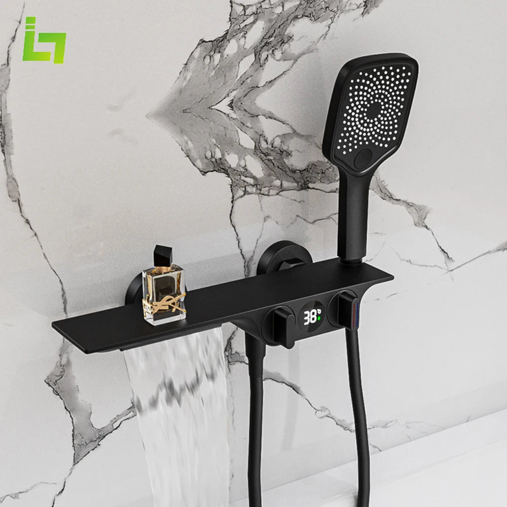 Wall Mounted Bathtub Faucet Two Function Long Large Shelf Temperature Display Water Flow Generate Electricity