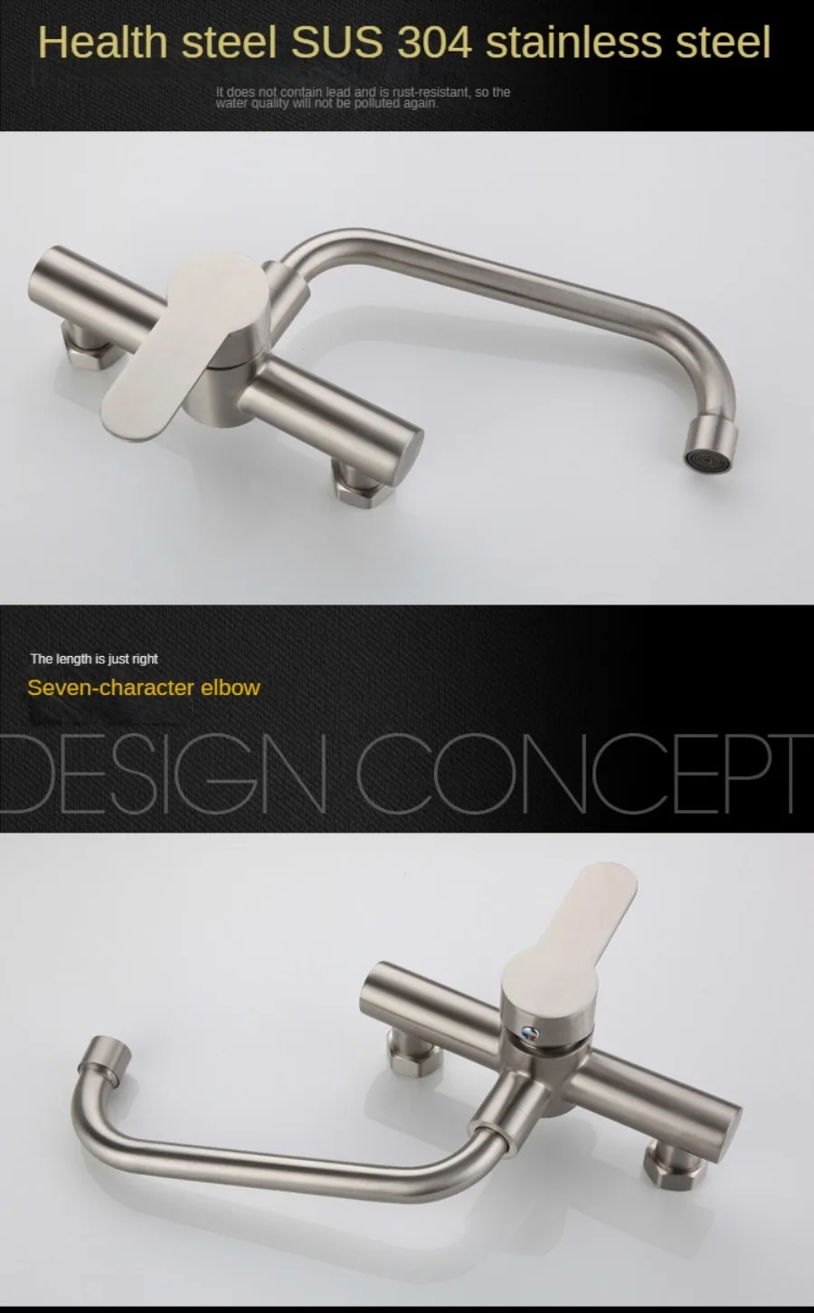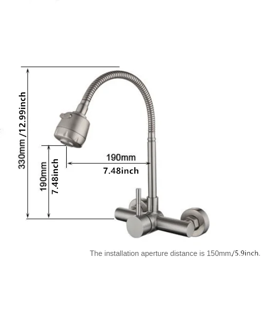 Wall Mounted Kitchen Faucet Wall Kitchen Mixers Kitchen Sink Tap 360 Degree Free Swivel Flexible Hose Double Holes Water Taps