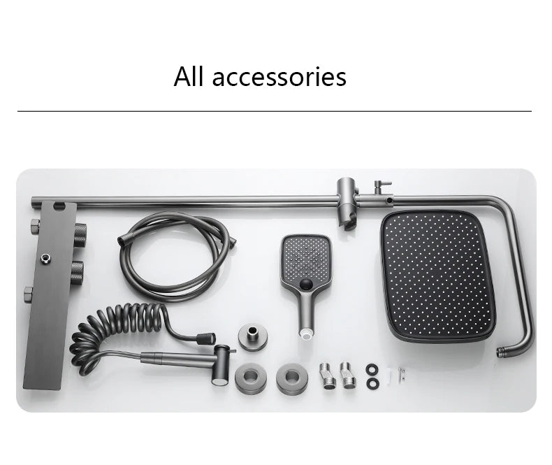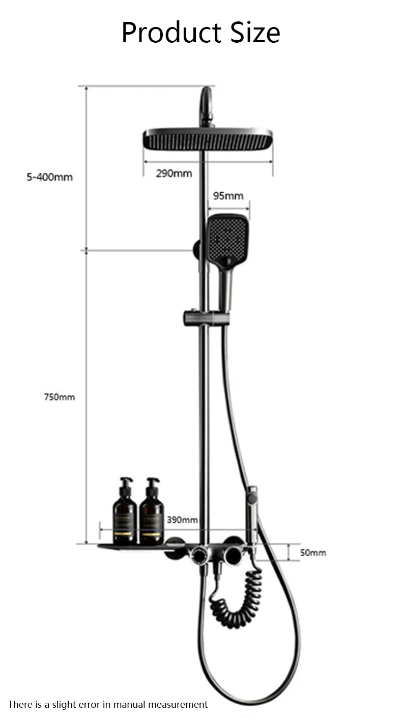 Wall-Mounted Waterfall Shelf Bathroom Mixer Faucet Digital Display Shower Set,Copper Bathroom Showers Sets Bathroom Accessories
