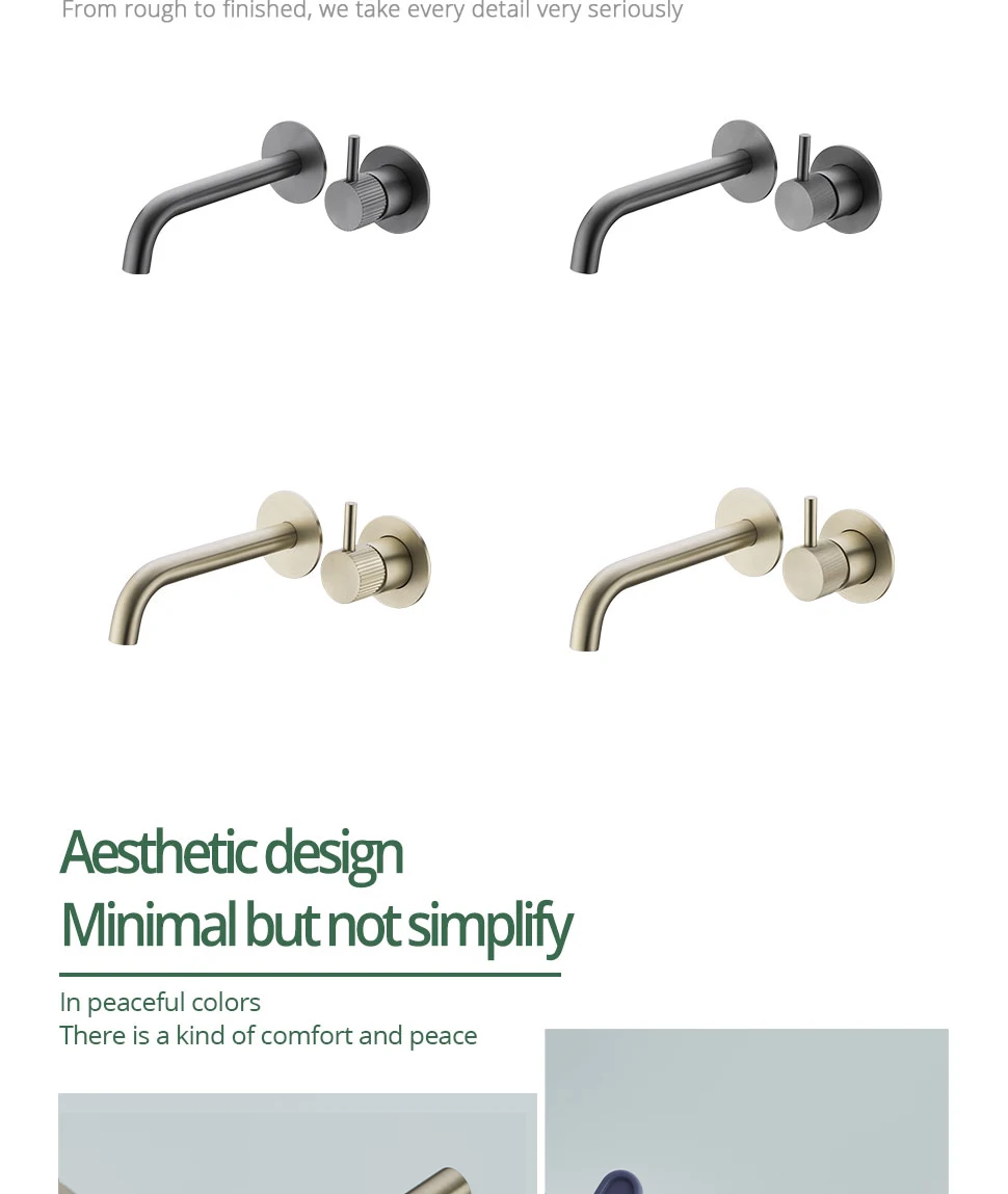Washbasin Faucet Bathroom Sink Faucets Knurled Brushed Gold Wall Mounted Water Mixer Tap Gunmetal Brass Hot &Cold