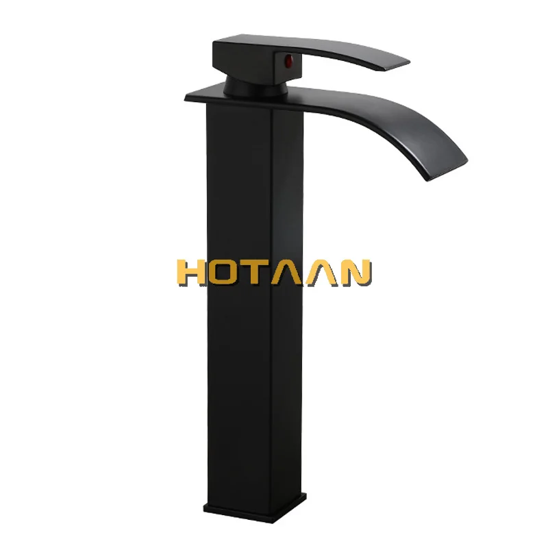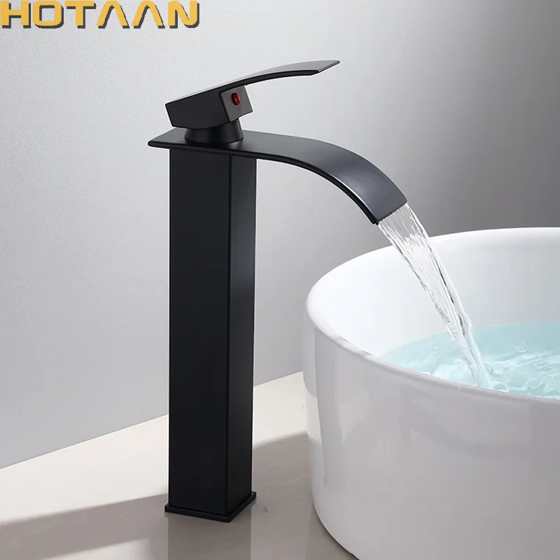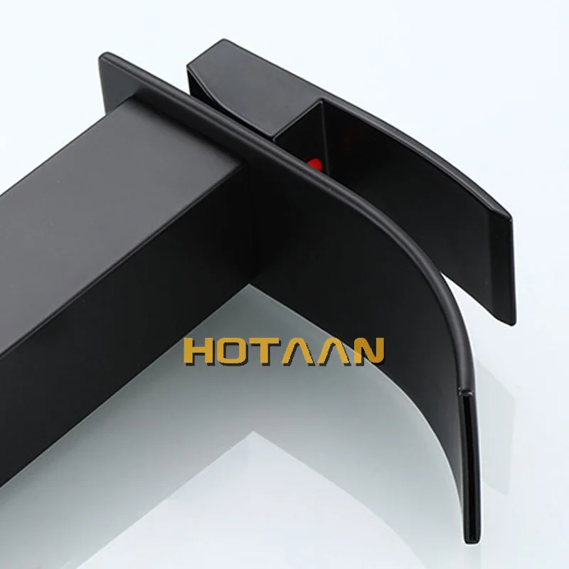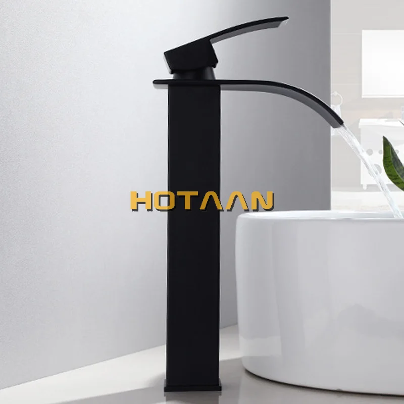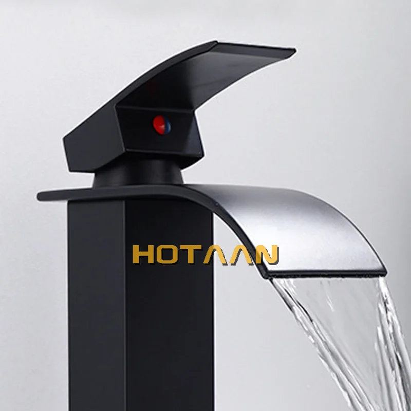 Waterfall Brass Basin Faucet Deck Mounted Single Lever Single Hole Cold&Hot Bathroom Basin Mixer Black Plated Tap
