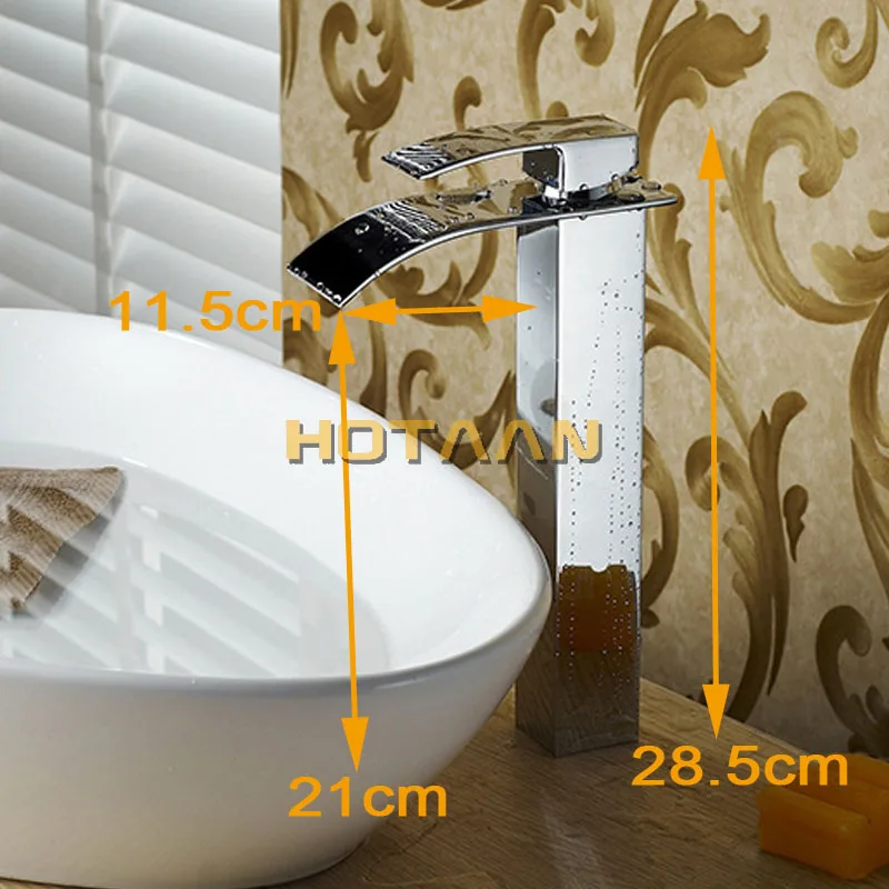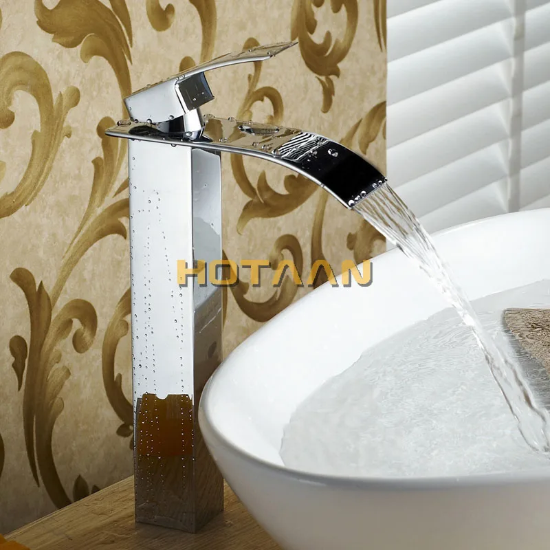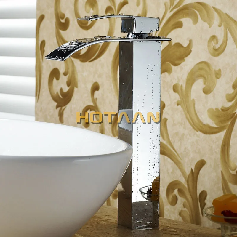 Waterfall Brass Basin Faucet Deck Mounted Single Lever Single Hole Cold&Hot Bathroom Basin Mixer Chrome Plated Tap